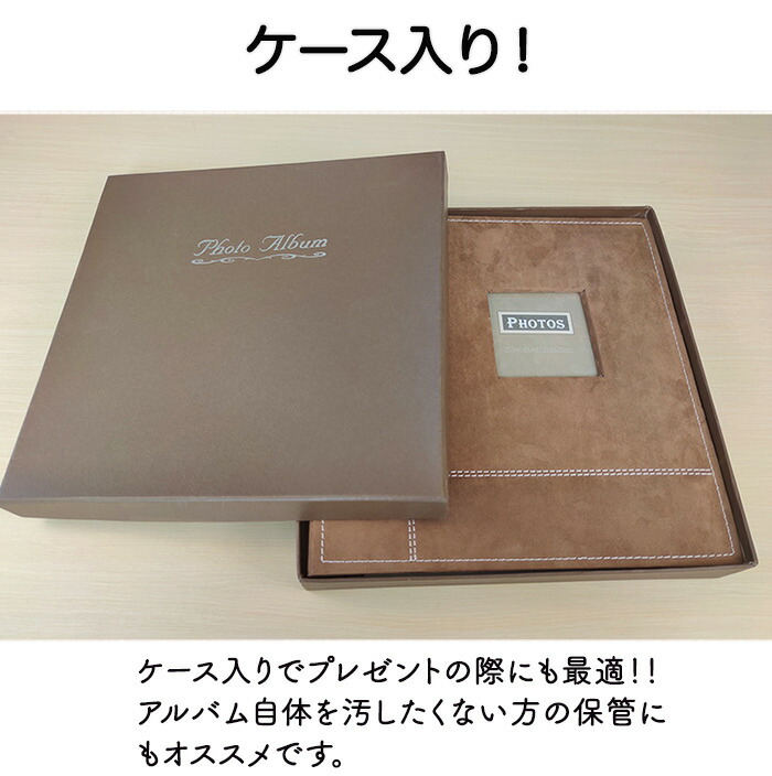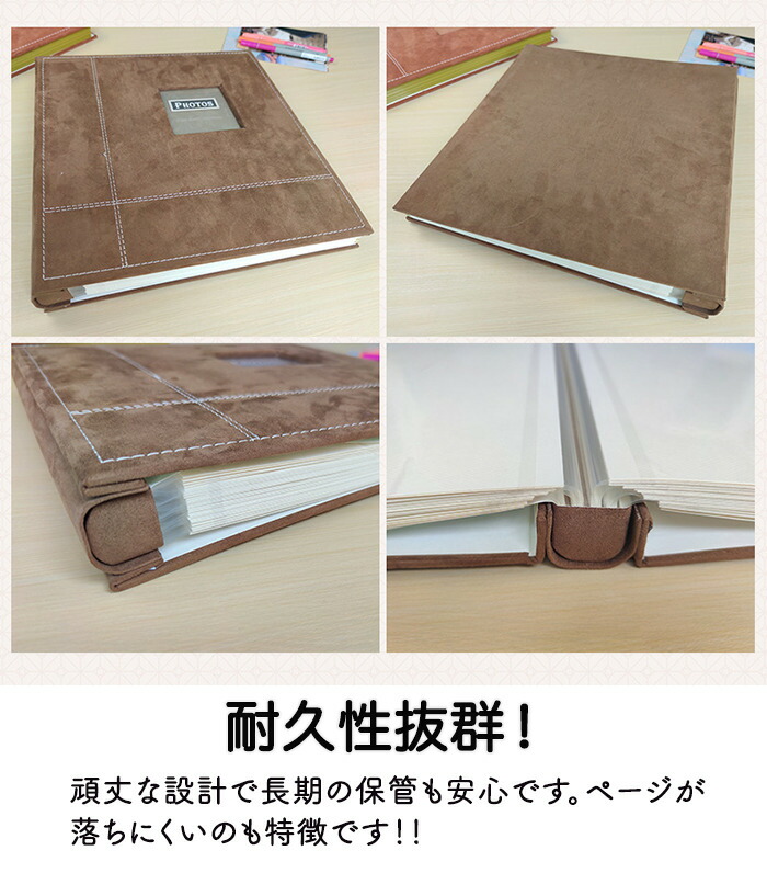 結婚式や誕生日などの特別な瞬間を色褪せずに保存できるこのアルバムは、ブラウンとベージュのシンプルでおしゃれなデザインが特徴です。