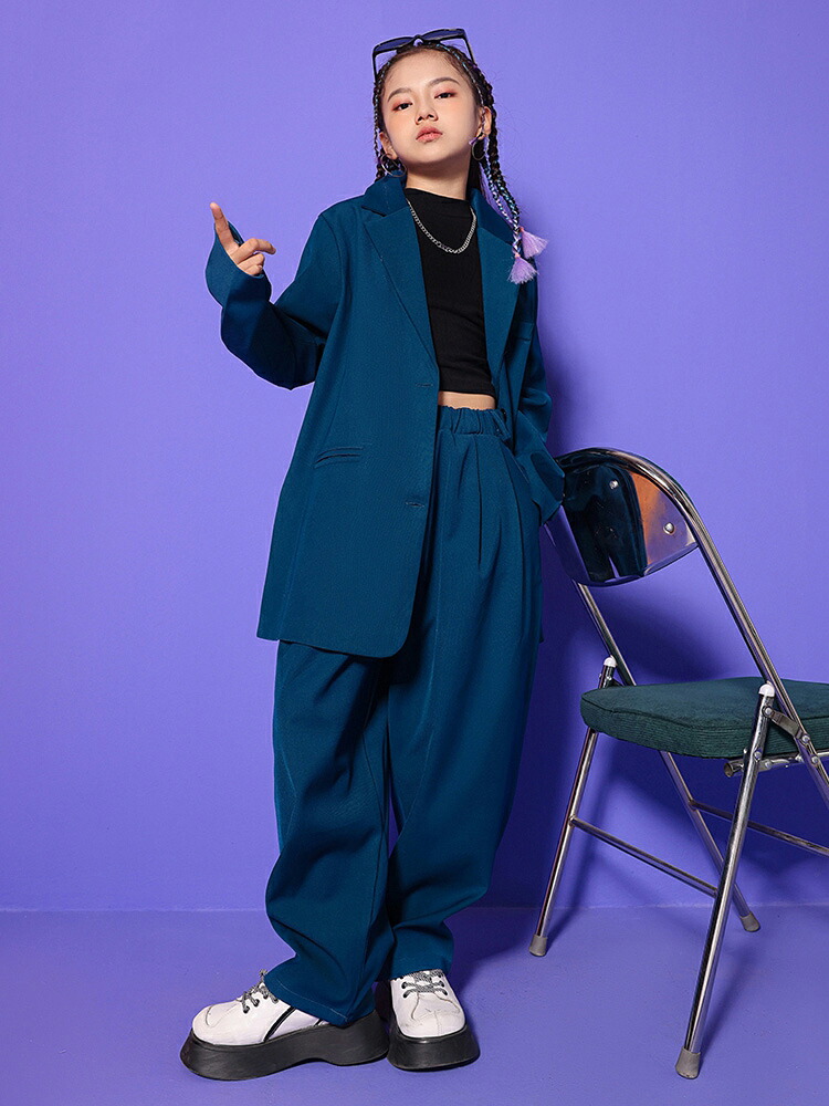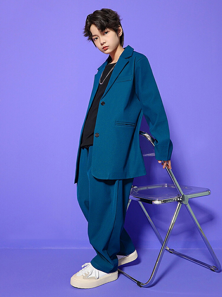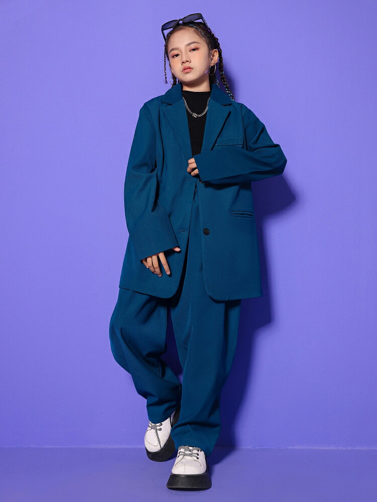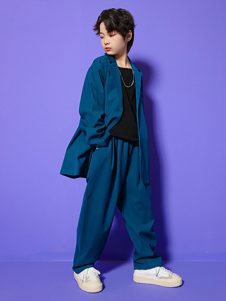セットアップキッズダンス衣装 男の子 女の子 ゆったり スーツ セット 衣装 子ども服 大型団体服 紺色 b体 発表会 キッズ ダンス衣装 上品 かっこいい ネイビー セットアップ