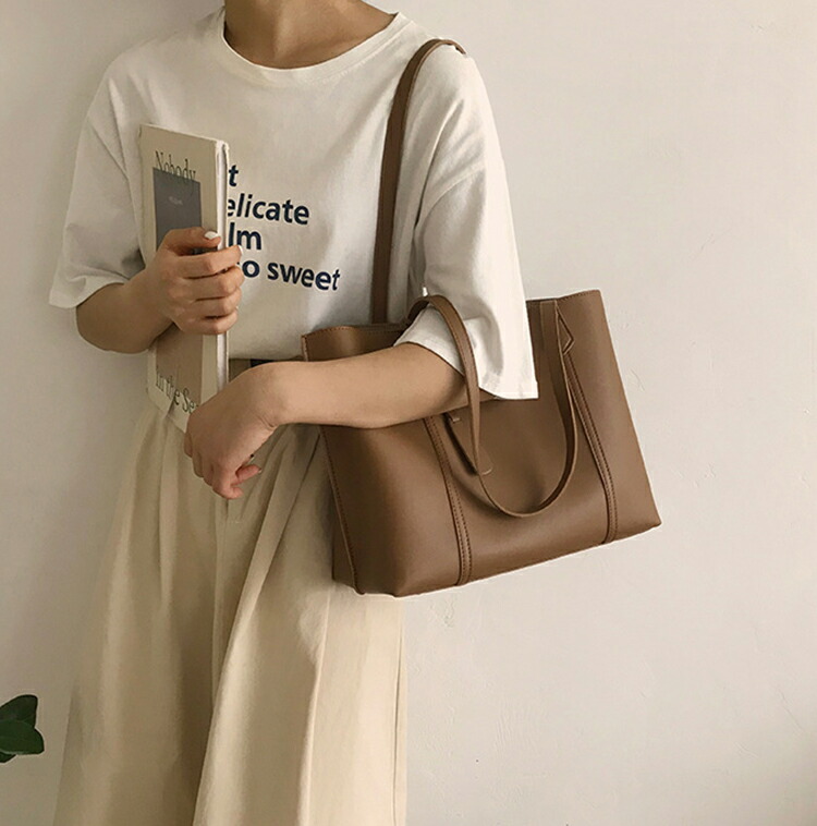 トートバッグ レディース ショルダーバッグ 2way ハンドバッグ ins風 おしゃれ 鞄 通学 通勤用バッグ 横型 肩掛け 手持ち 大容量 軽い 純色 PU革バッグ お洒落 人気 選べる4 手提げ袋