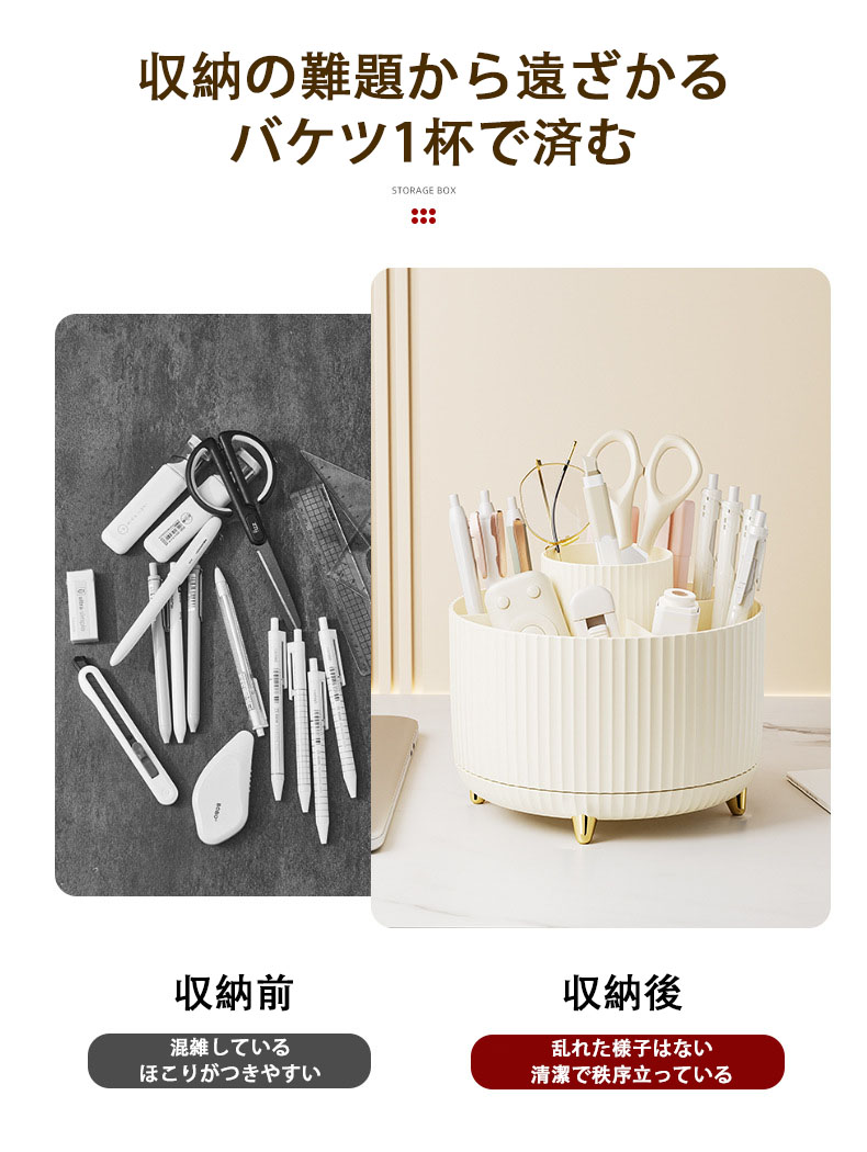 デスクトップ文具収納ボックス 大容量 オレンジ ホワイト ブルー ベージュ ピンク