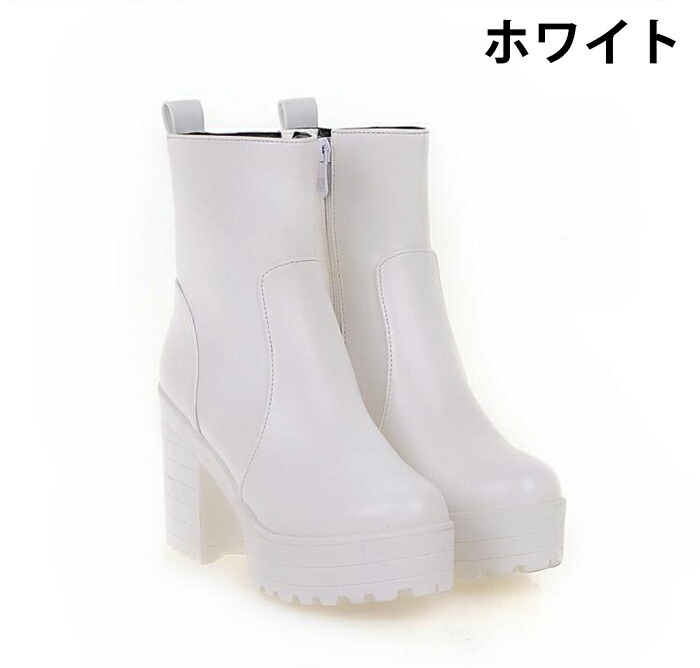 ショート ブーツ ラウンドトゥ レディース 厚底 9.5cmヒール サイドファスナー スタイルアップ ハイヒール チャンキーヒール 美脚 細見せ 靴 痛くない 履きやすい 黒 白 女生 英国風ブーツ
