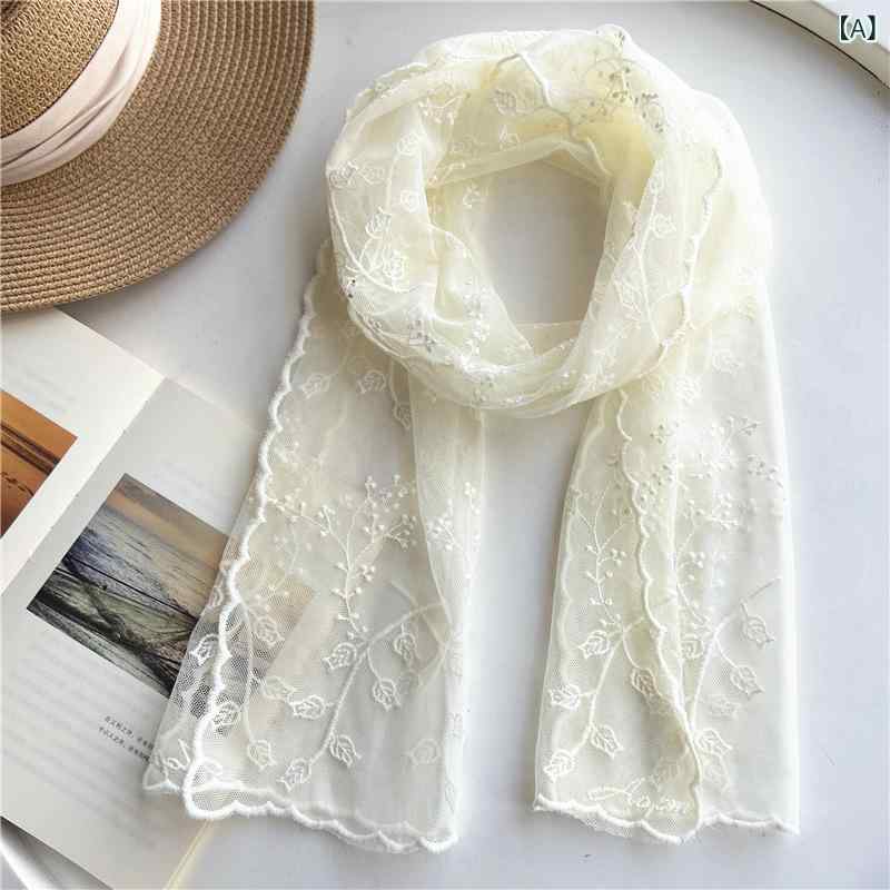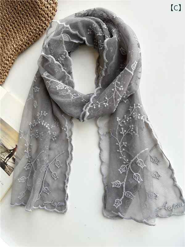 スカーフ 女性用 エレガント レース A:オフホワイト B:黒 C:グレー D:ピンク