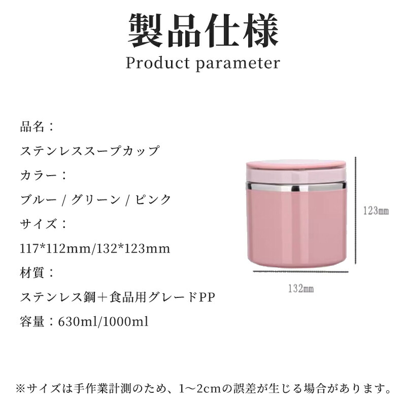 真空断熱スープジャー630ml 100 弁当箱 水筒 保温ランチジャー 通販 グリーン ピンク ブルー 630ml 1000ml