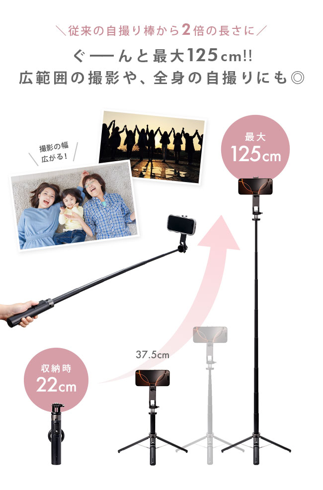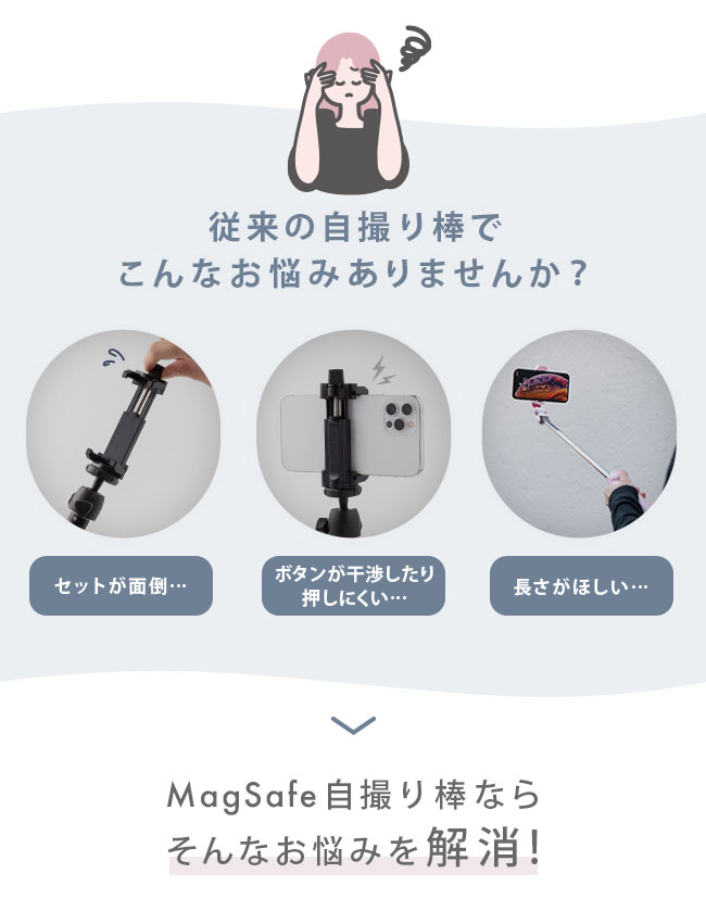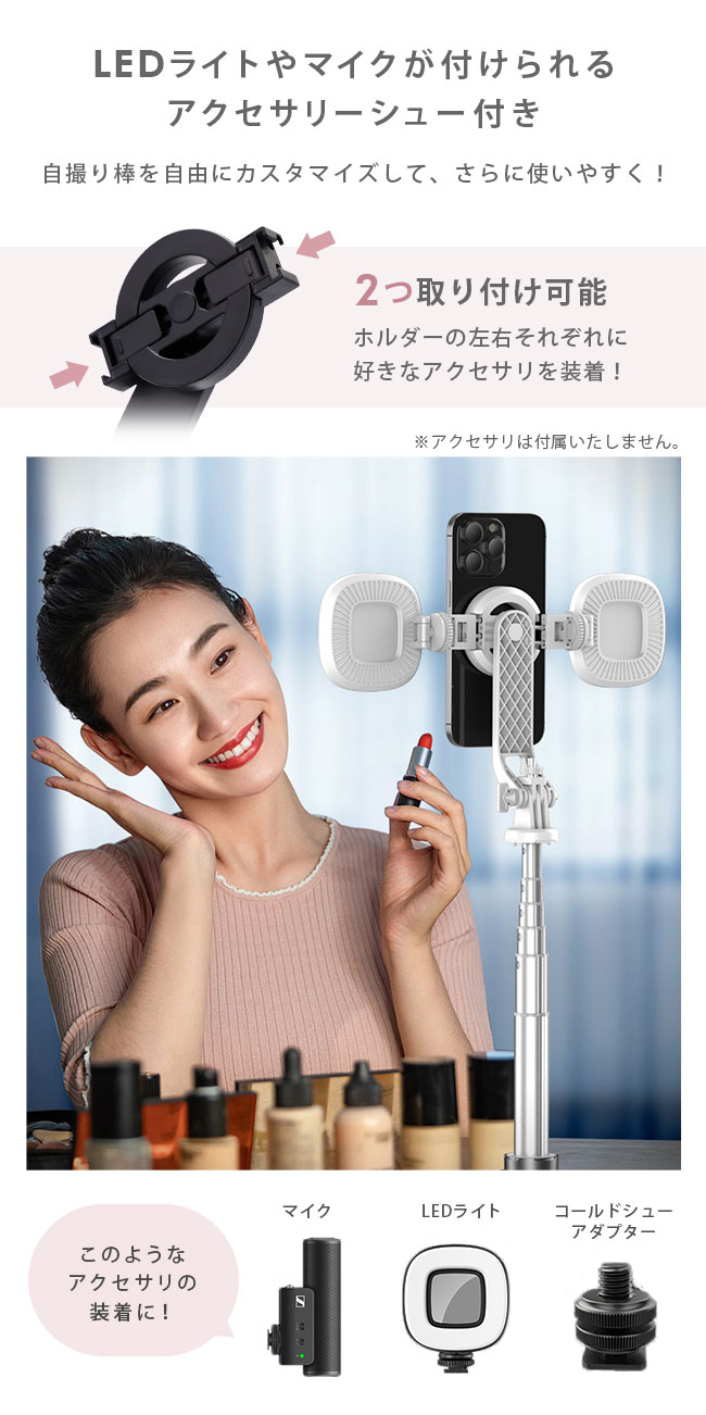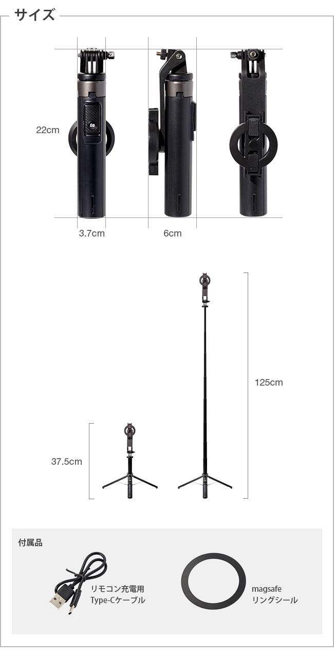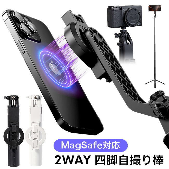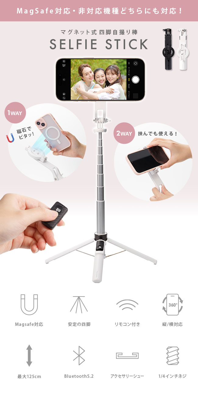 P135 マグネット式セルフィースティ スマートフォン 携帯電話用アクセサリー セルカ棒 通販 ブラック ホワイト