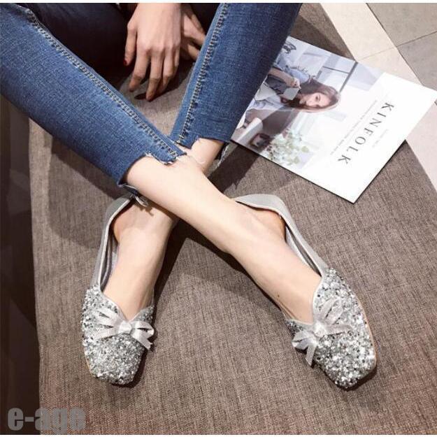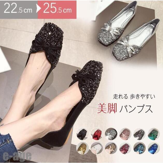 全12色パンプス 痛くない Vカットオフィス ローヒール ぺたんこ キラキラバレエシューズフラットパンプス 走れる ぺたんこカラバリ スクエアトゥ