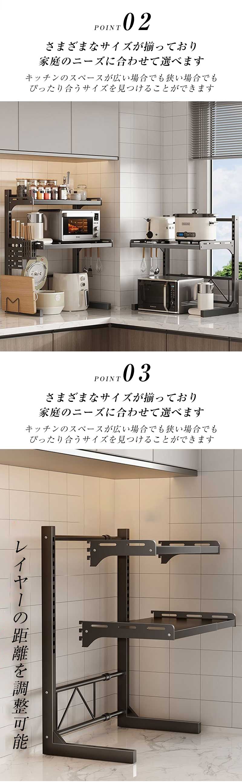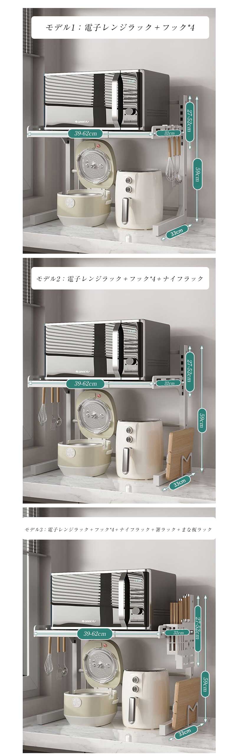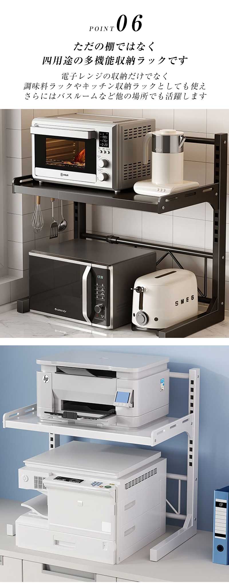 電子レンジラック レンジ上ラック トー ブラック ホワイト モデル1 モデル2 モデル3