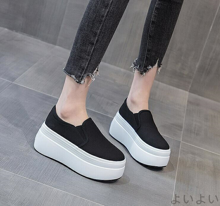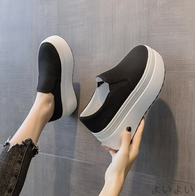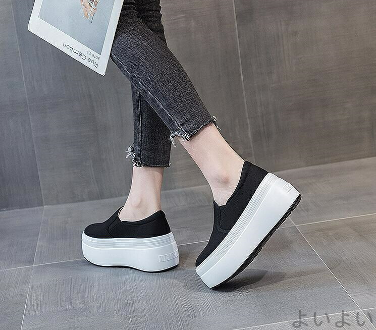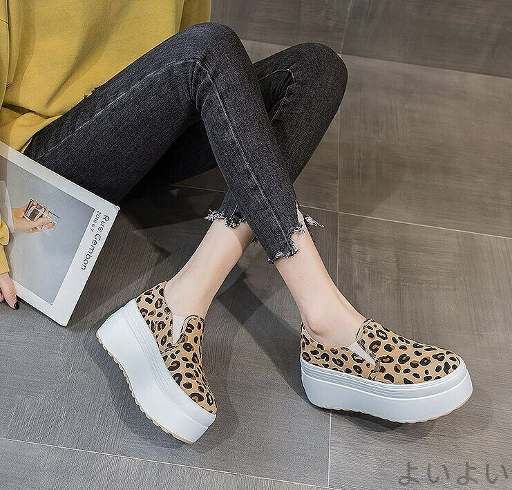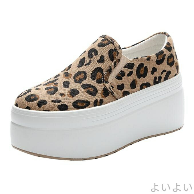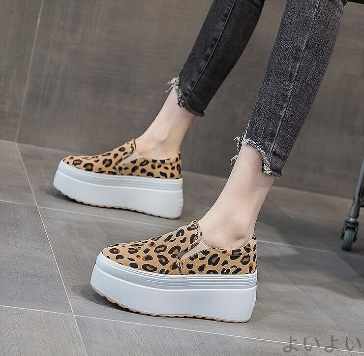 インヒールスニーカー 厚底 スニーカー レディース スリッポン( ヒョウ柄 )厚底 インヒール 黒