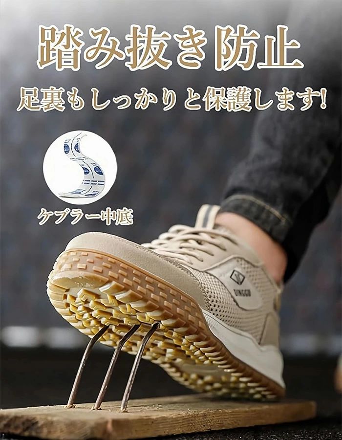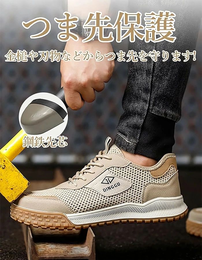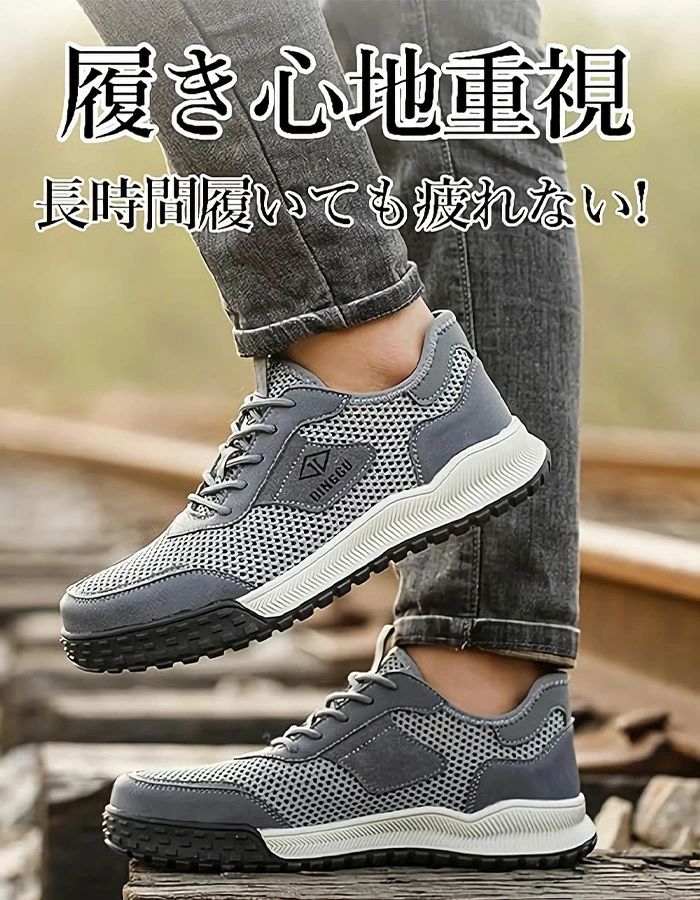 通気性 安全靴 夏用 作業靴 蒸れない カーキ グレー 38(内寸24cm) 39(内寸24.5cm) 40(内寸25cm) 41(内寸25.5cm) 42(内寸26cm) 43(内寸26.5cm) 44(内寸27cm) 45(内寸27.5cm)