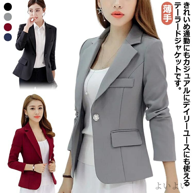 サマージャケット 薄手 通勤 シンプル コート ジャケット 豊富 ネイビー グレー ワインレッド ブラック S M L XL 2XL