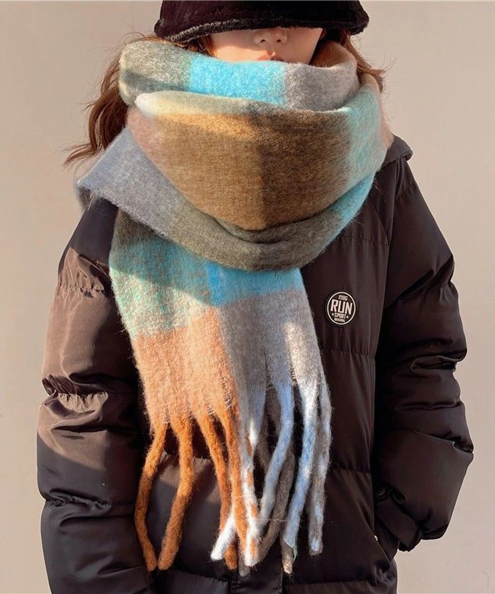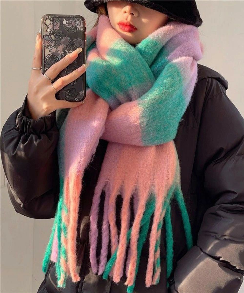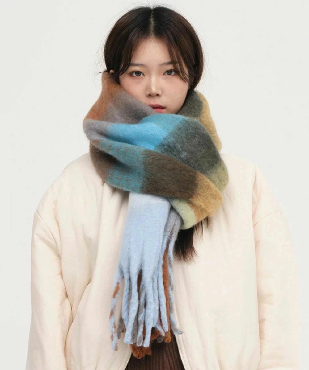 スカーフショール リバーシブル 秋冬暖 バッグ 小物 ブランド雑貨 通販 イエロー*ベージュ オレンジ*レッド グリーン*ピンク グレー*グリーン パープル*アイボリー ライトブルー*ブラウン