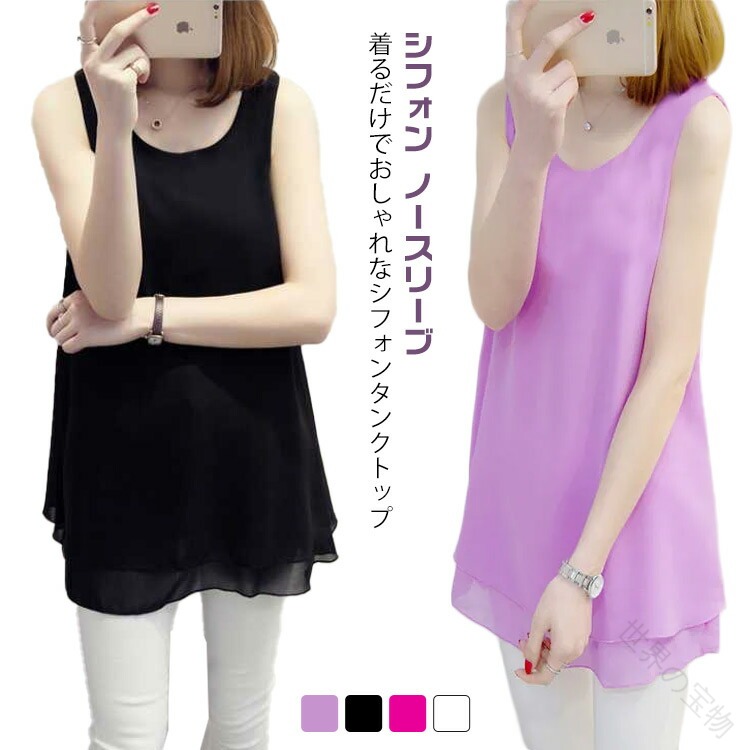 シフォン ノースリーブ カジュアル タ トップス タンクトップ 早い者勝ち ブラック バイオレット ホワイト バラレッド S M L XL 2XL 3XL 4XL 5XL