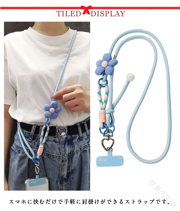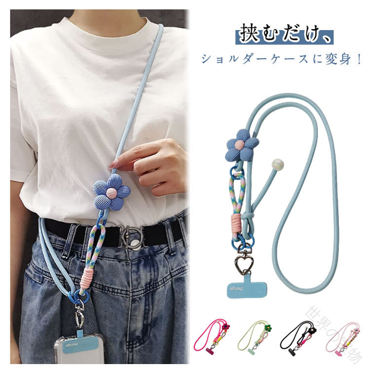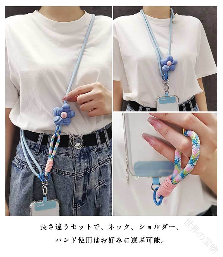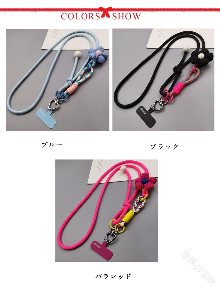 手ぶら スマホショルダー ストラップ スマートフォン 携帯電話用アクセサリー ストラップ マスコット 新作 ブルー ブラック バラレッド グリーン ピンク