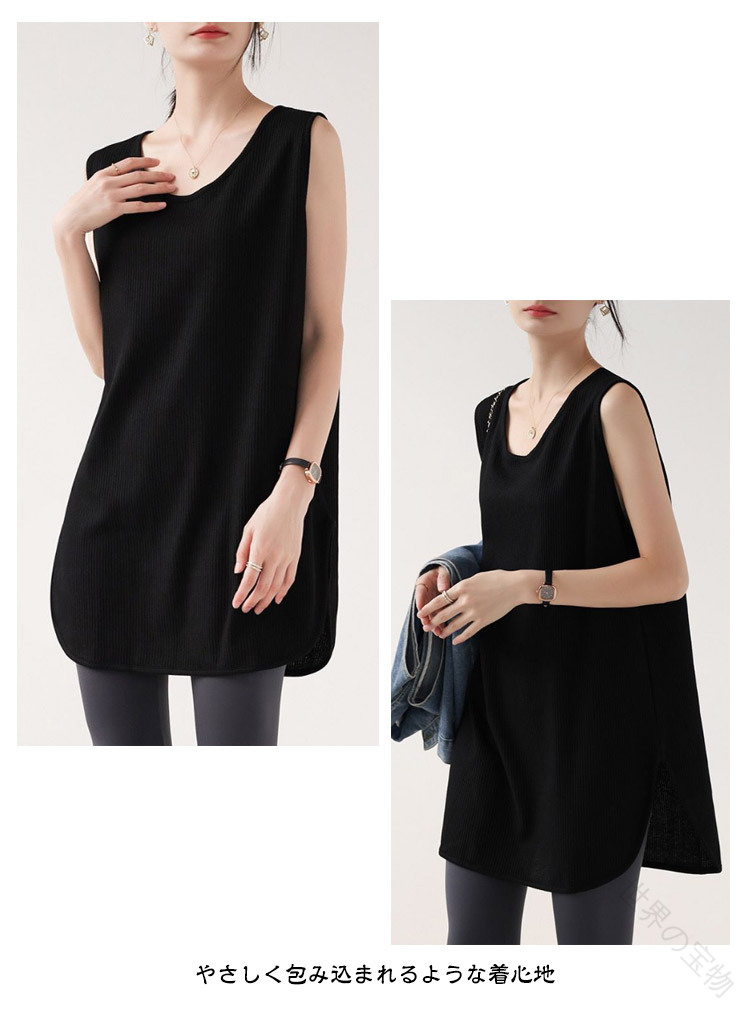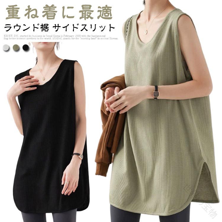 重ね着 トップス 体型カバー サイドス レディースファッション 豊富 白 黒 グリーン M L XL 2XL 3XL 4XL