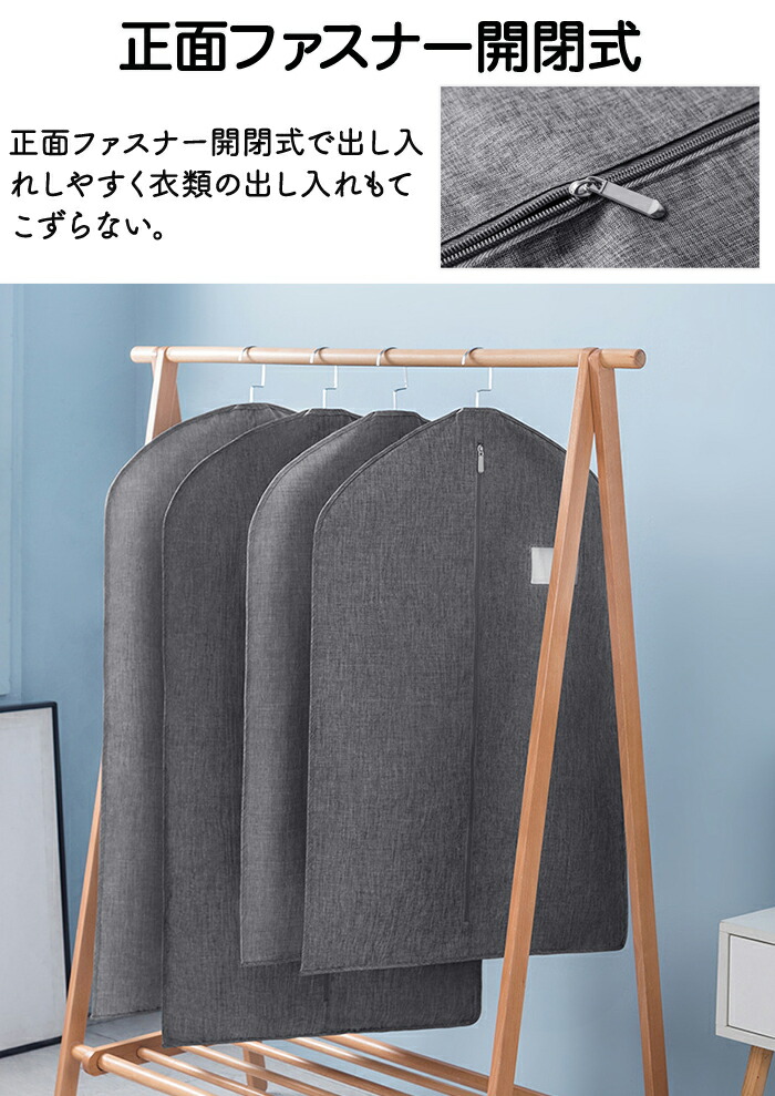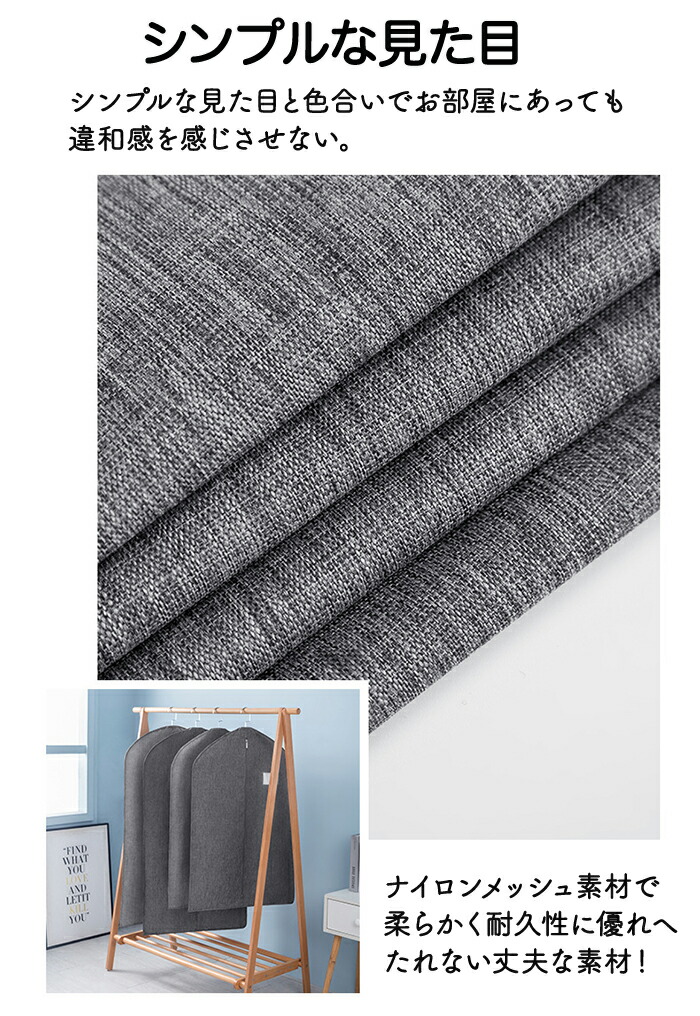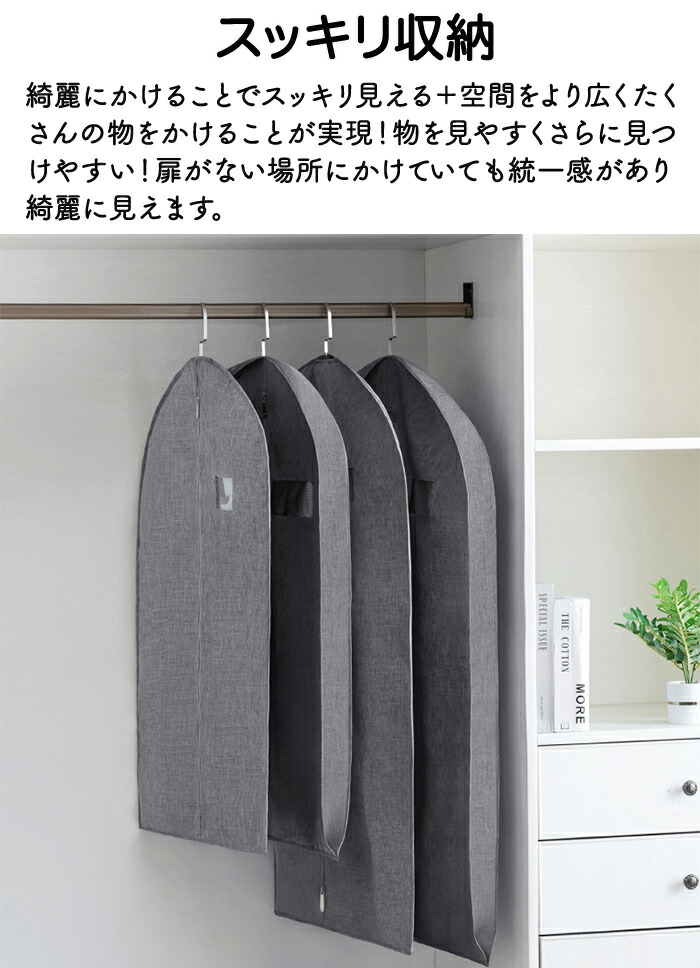 全面覆われているので埃などから衣類を守り通気性の良い不織布で湿気や臭いがこもりにくい。