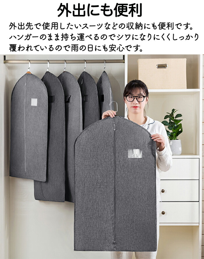 洋服カバー 衣装カバー 服カバー 服ケース 衣類カバー 不織布 ハンガー ダストバッグ スーツカバー 衣替え 衣類長期保管タンス 大容量 収納 防虫 防塵 防湿 コンパクト 収納袋 底まで 透明窓付き