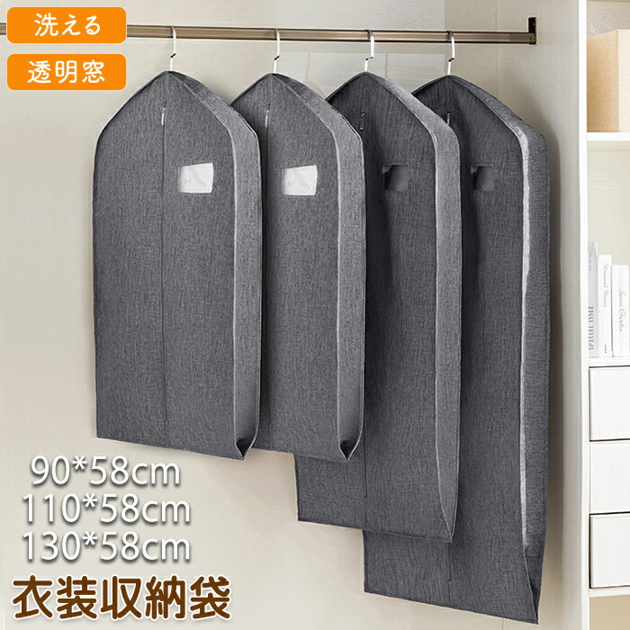 洋服カバー 衣装カバー 服カバー 服ケ グレー チャコール 90*58cm 110*58cm 130*58cm