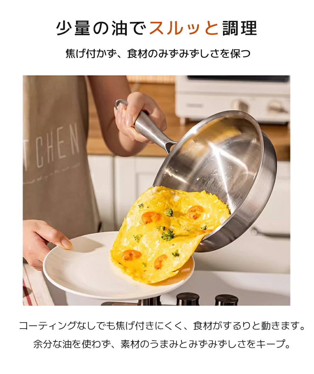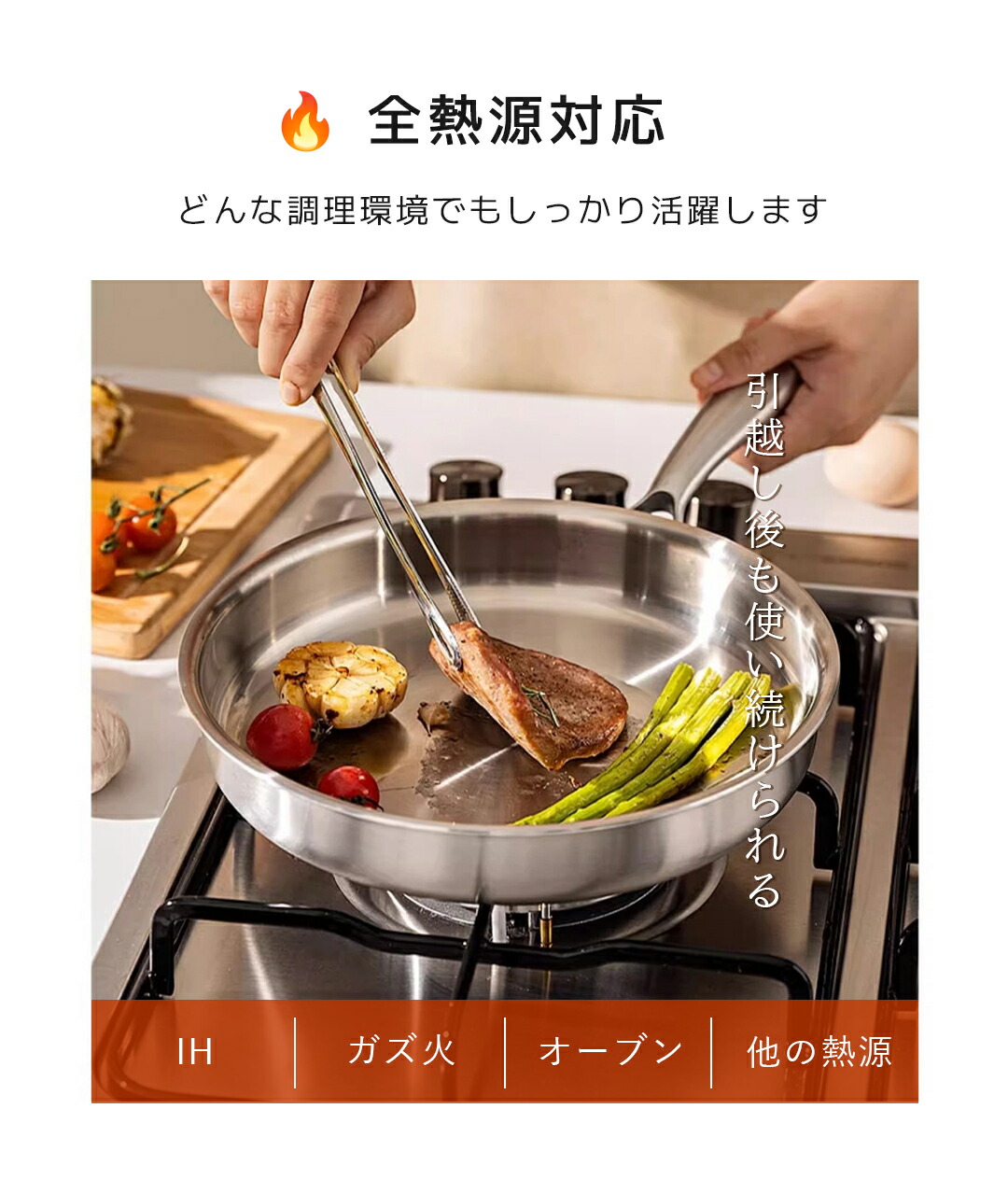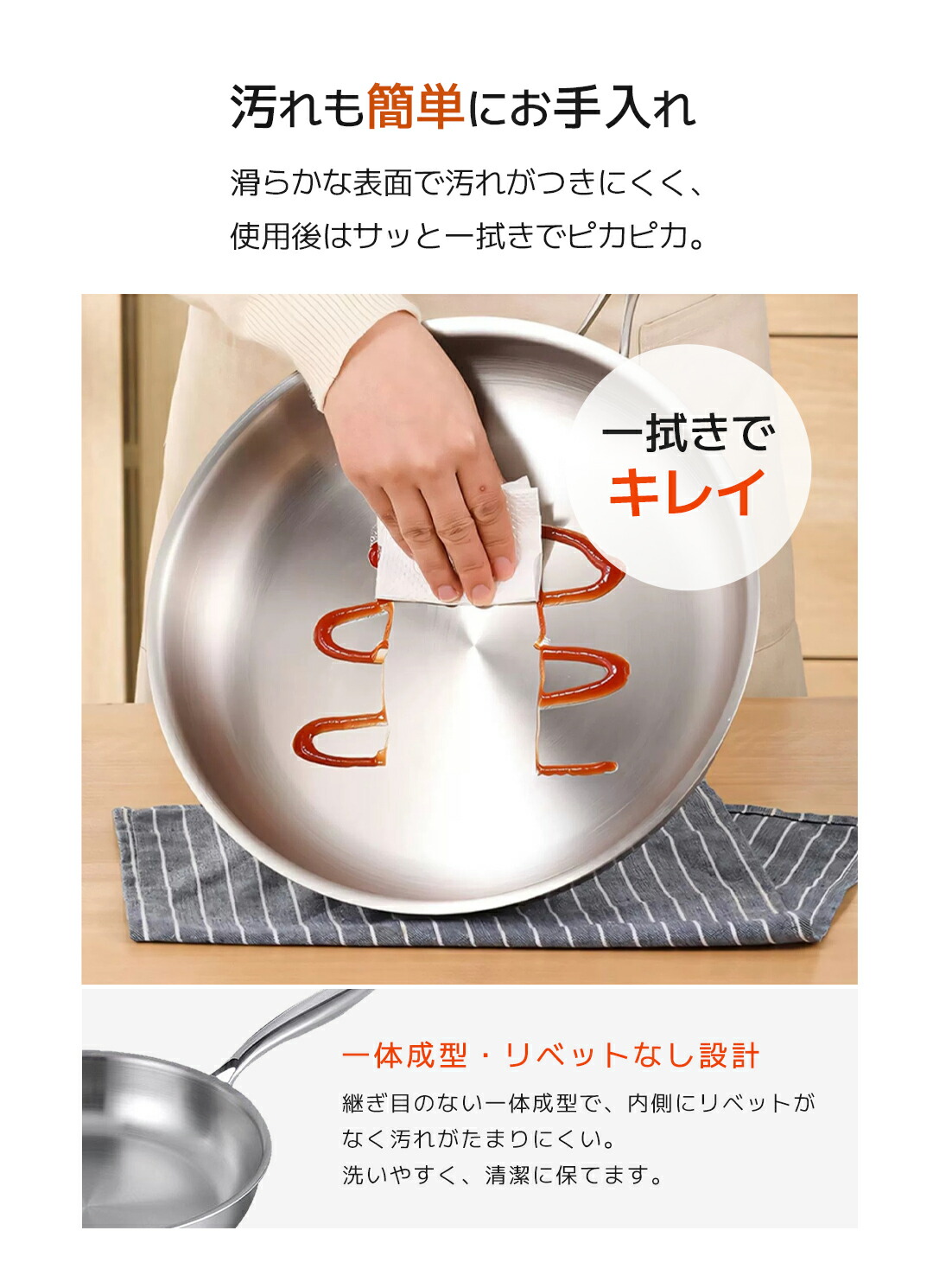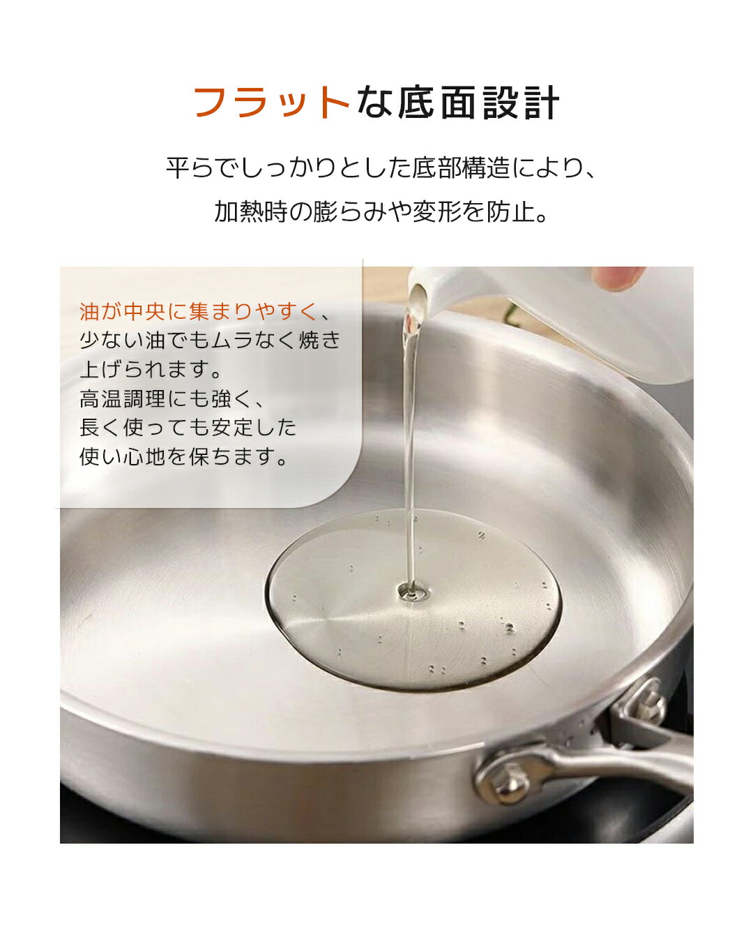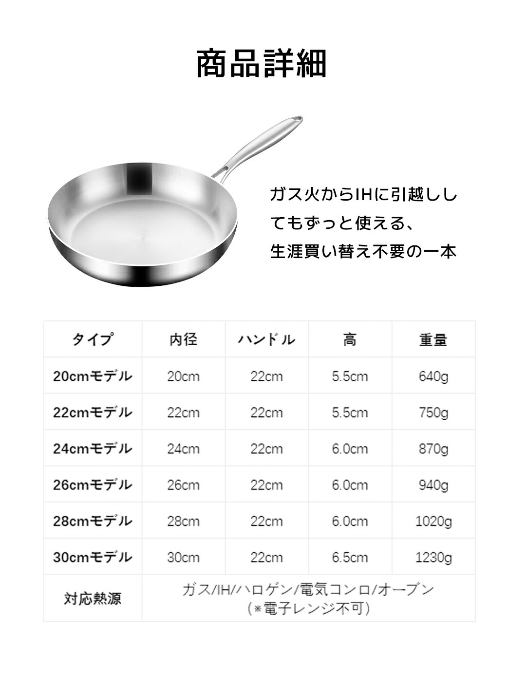 ステンレス フライパン コーティング無 内径20cm 内径22cm 内径24cm 内径26cm 内径28cm 内径30cm