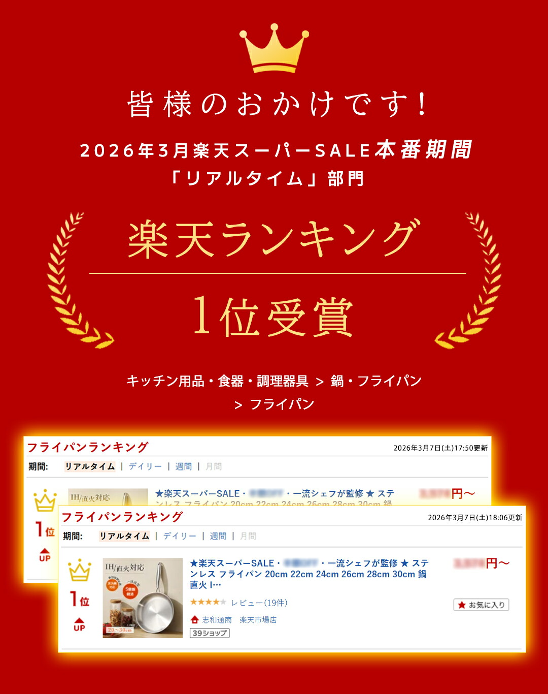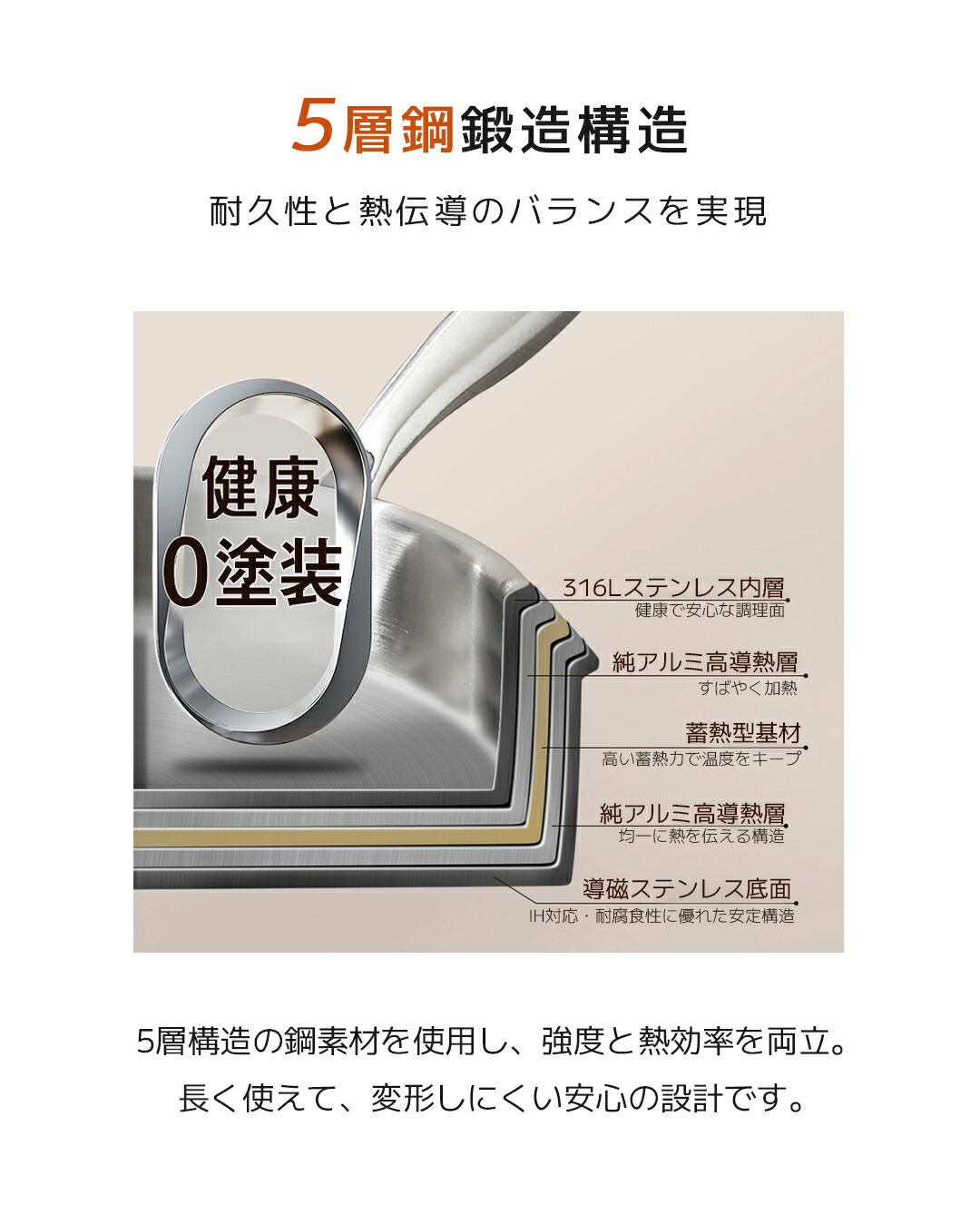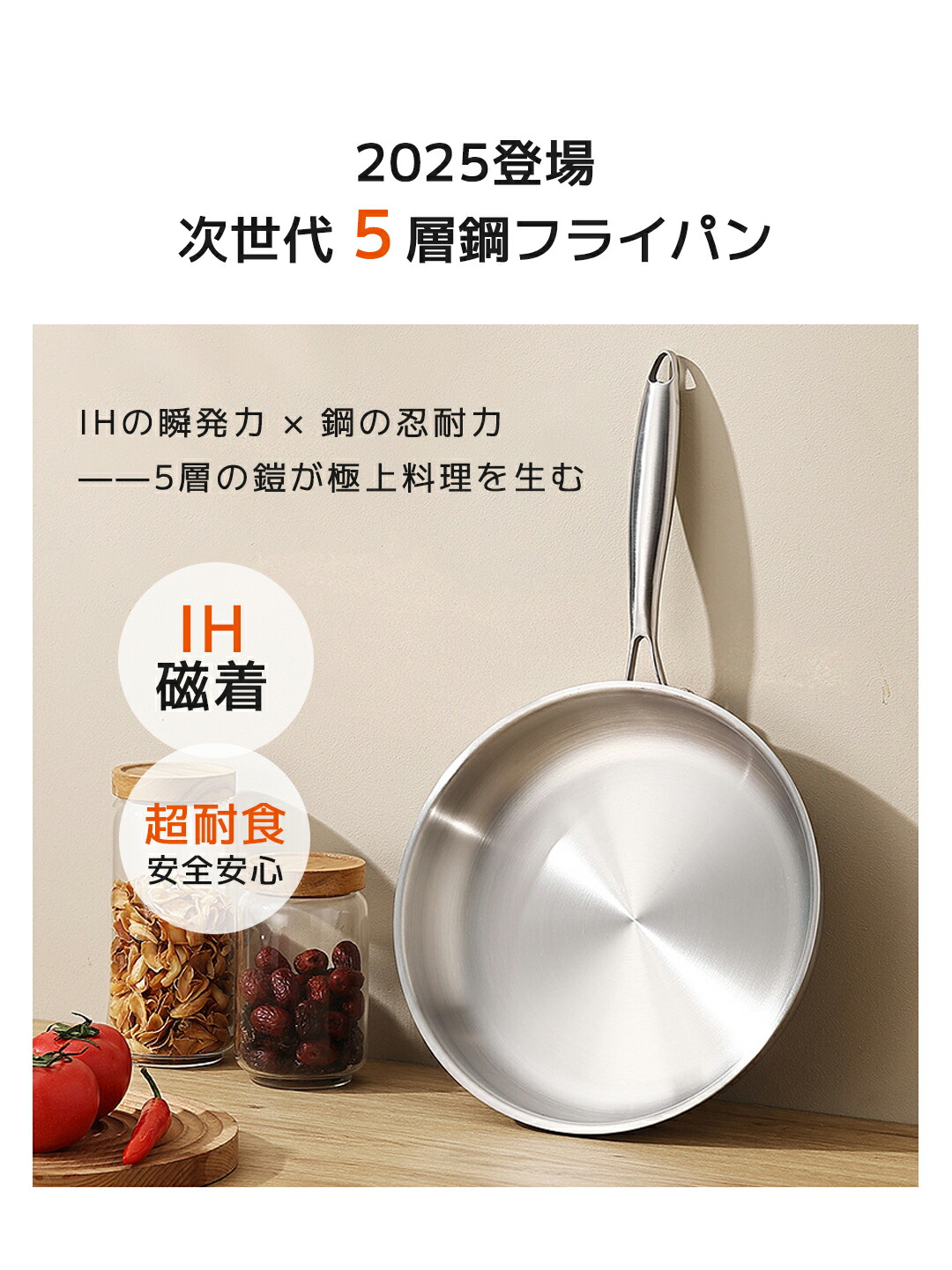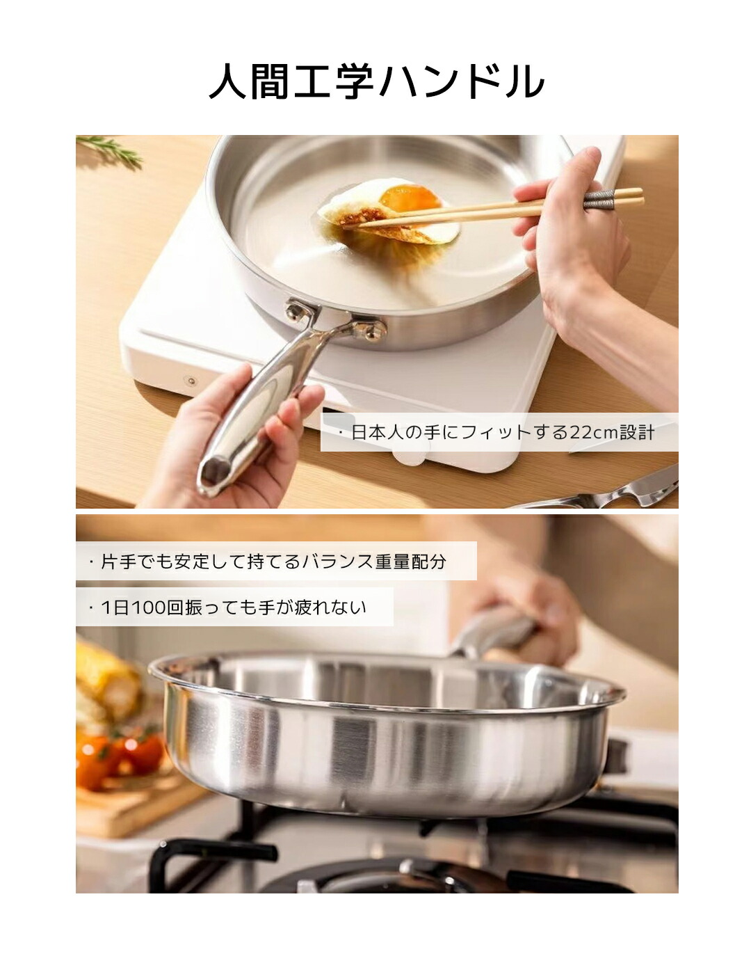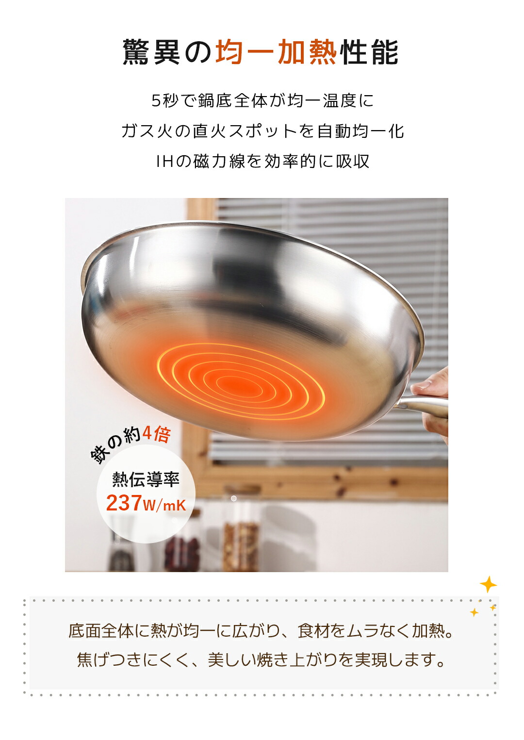 ステンレス フライパン コーティング無 内径20cm 内径22cm 内径24cm 内径26cm 内径28cm 内径30cm