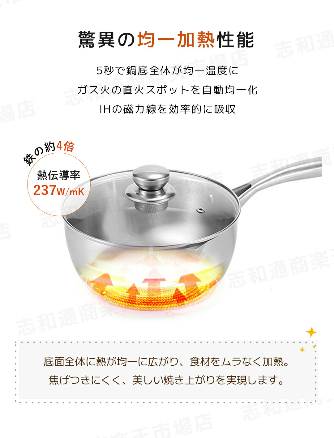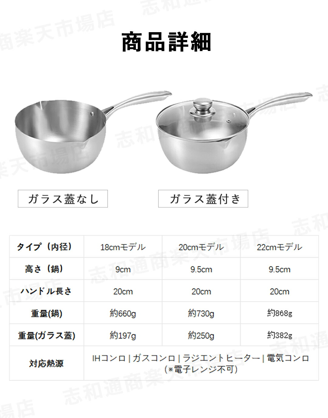 片手鍋 ステンレス コーティング無し 内径18cm 内径20cm 内径22cm なし 付き