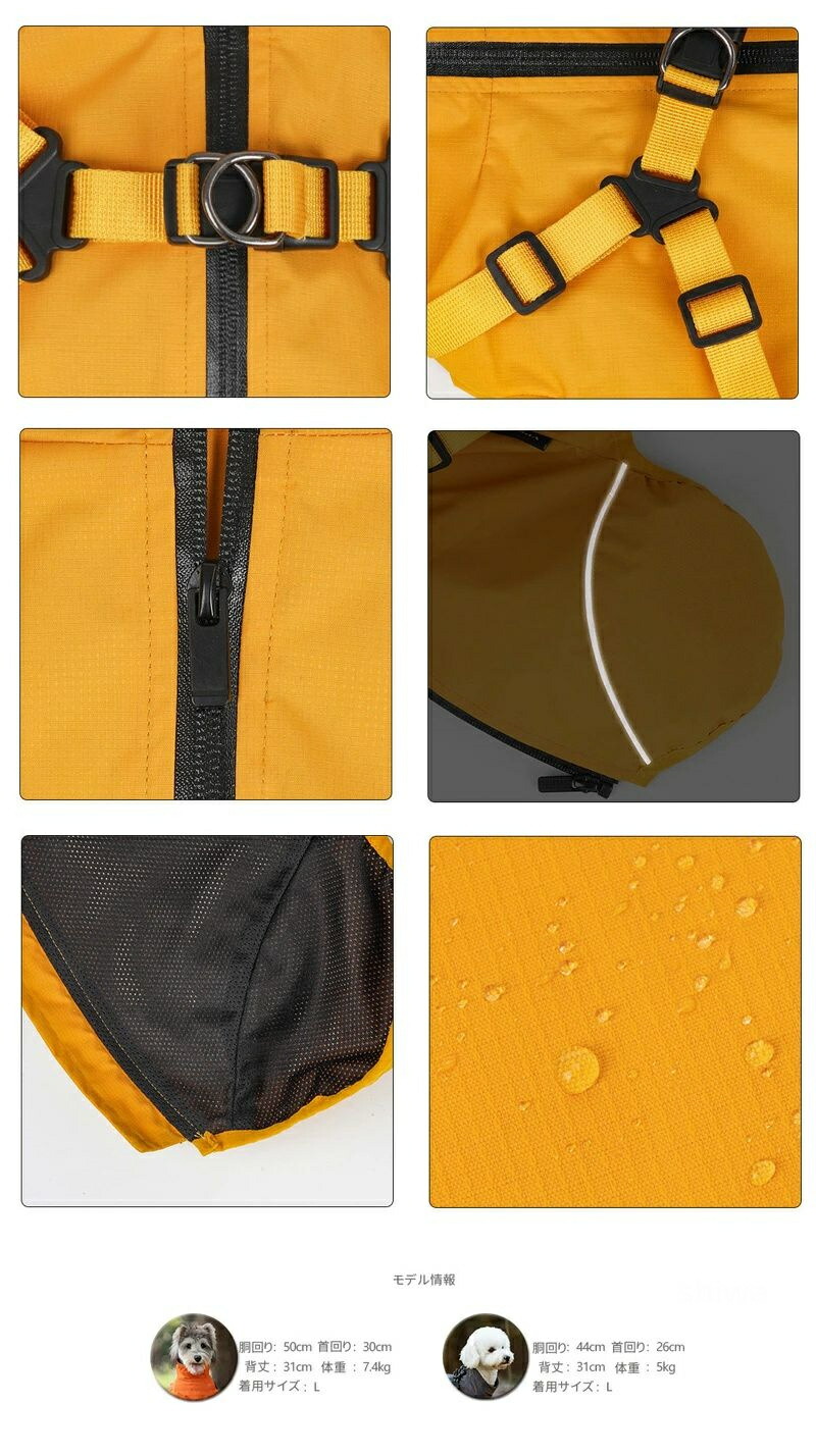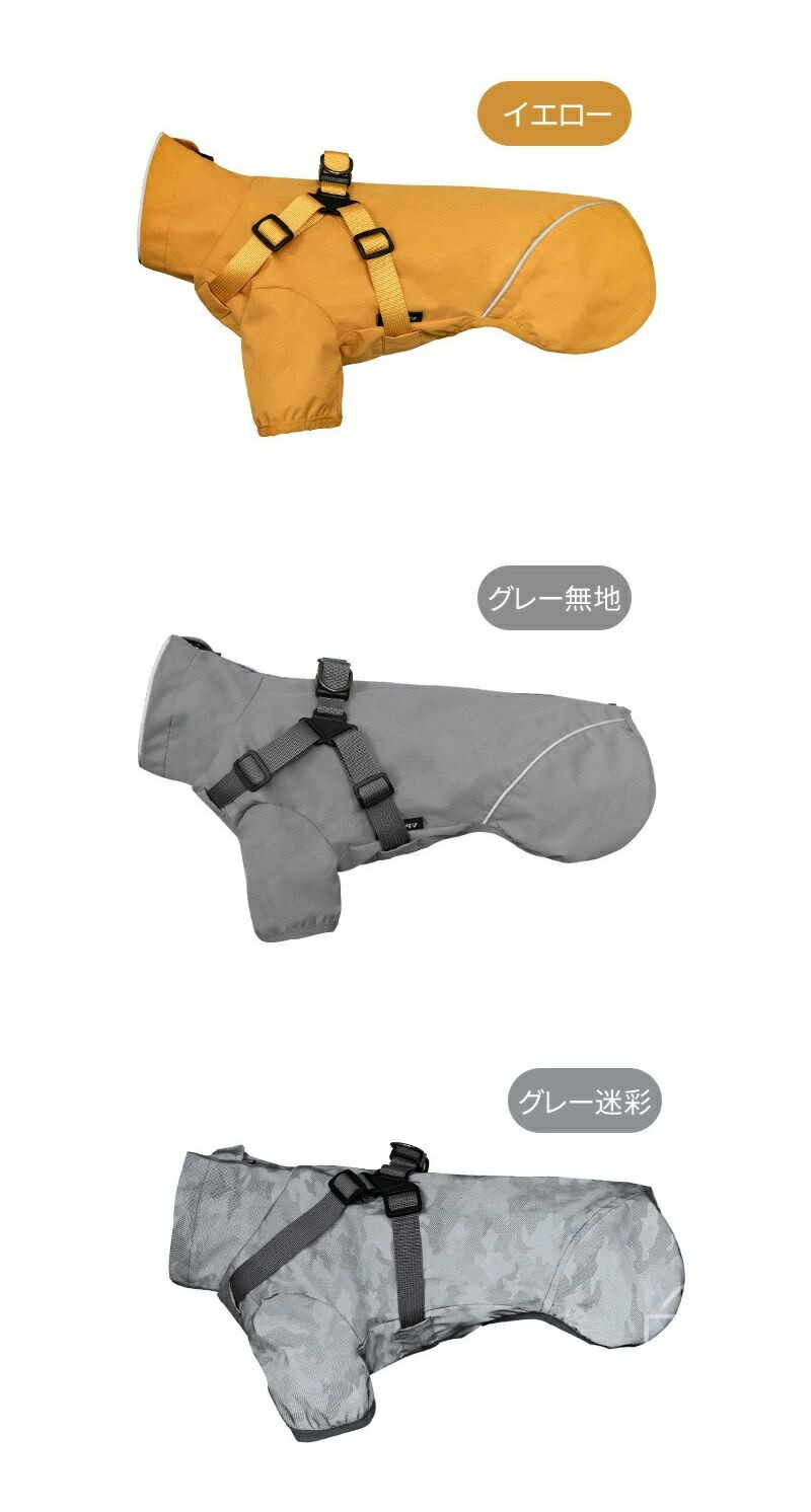 犬 レインコート ハーネス一体型 犬用 ペット ペットグッズ 早い者勝ち イエロー グレー無地 グレー迷彩 S M L XL XXL XXXL