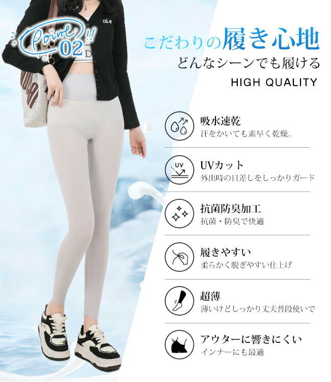 2025新作 クールレギンス 接触冷感 レディース 靴下 レッグウェア スパッツ レギンス 新作 M L XL ブラック ダークグレー ベージュ ライトグレー アイボリー ブラウン オフホワイト