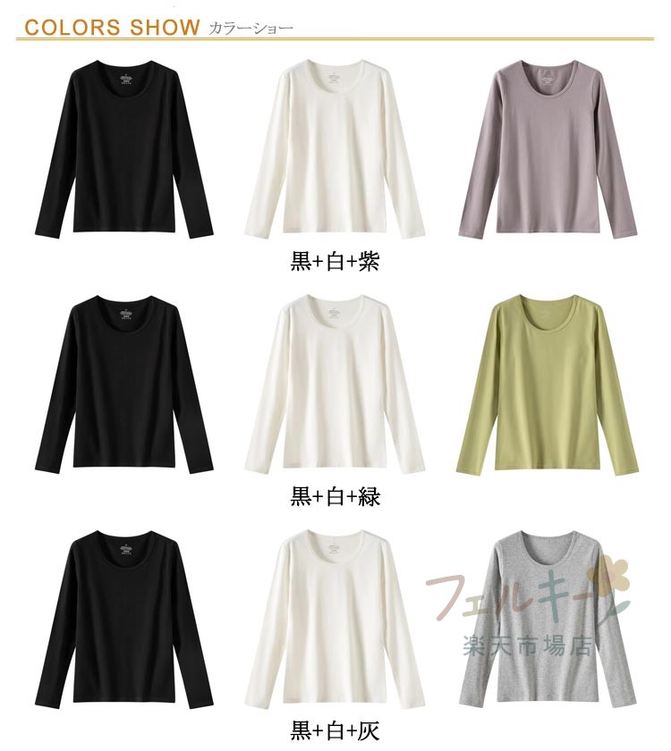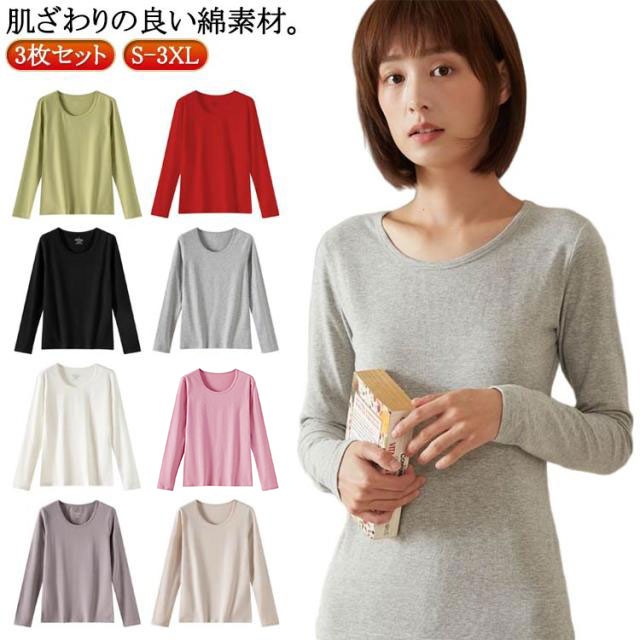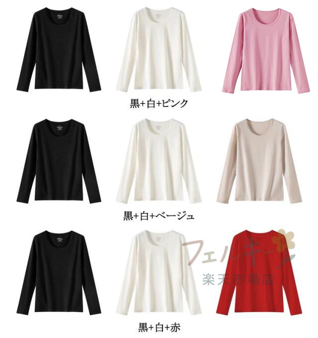長袖インナーシャツ 3枚セット レディ インナー 下着 ナイトウエア 続々登場 黒+白+紫 黒+白+緑 黒+白+灰 黒+白+ピンク 黒+白+ベージュ 黒+白+赤 S M L XL 2XL 3XL