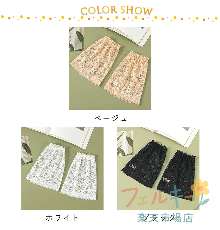 付け袖 レース フリル つけ袖 袖口 ゴルフ アームカバー 豊富な品揃え ブラック ホワイト ベージュ