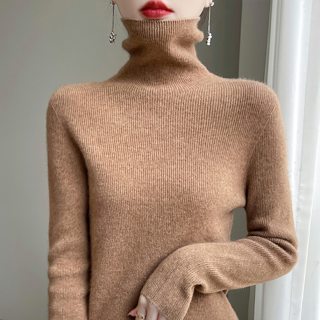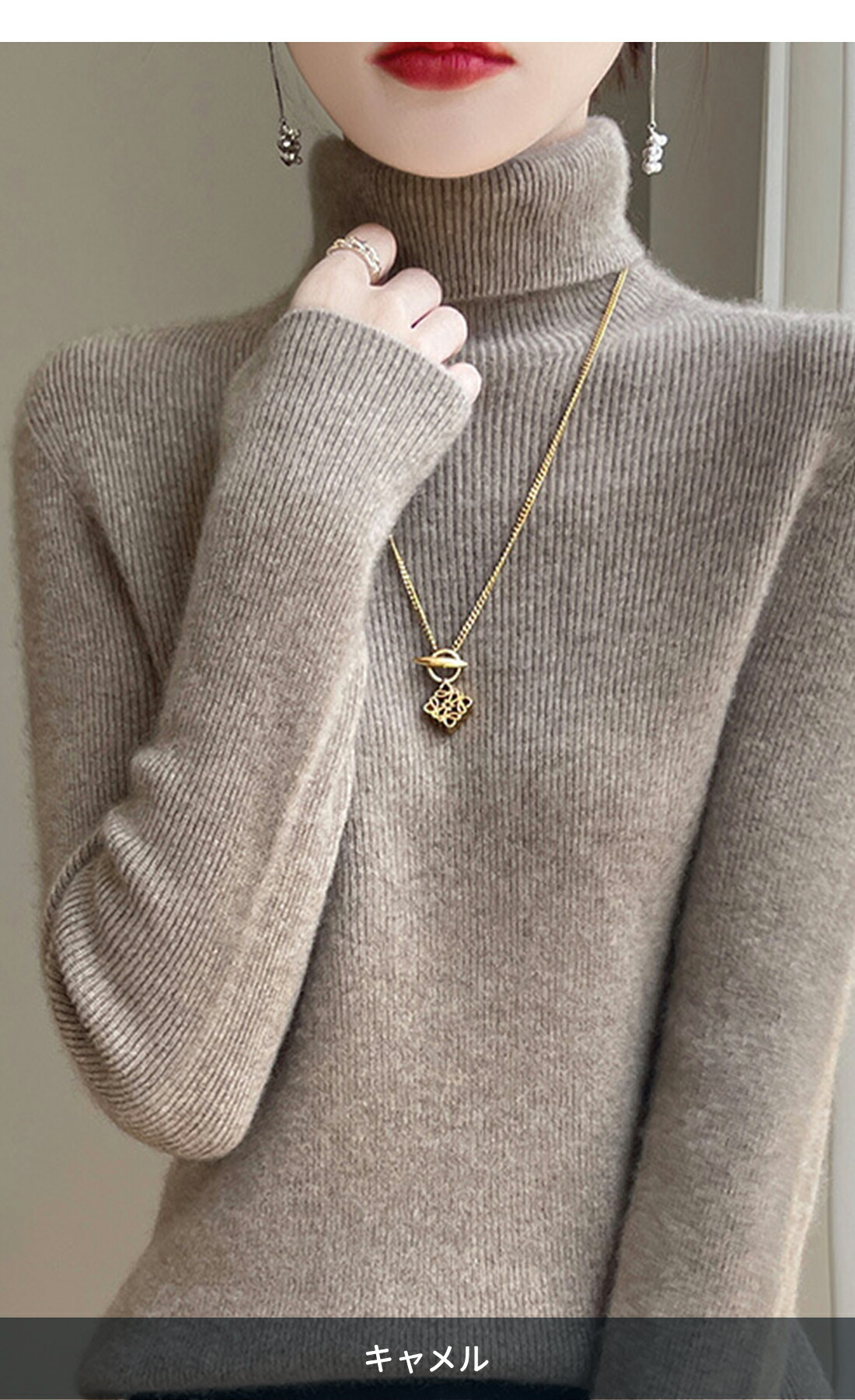 リブ編みデザインにより、立体感があり、体に優しくフィットし、どんなシーンでもエレガントでスタイリッシュなスタイルを演出します。