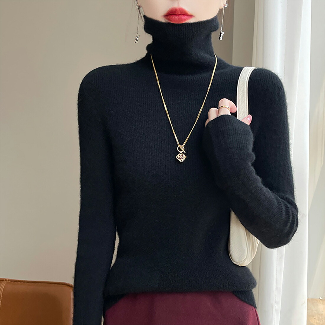また、ジャケットやコートのインナーとしても重宝し、シーズンを問わず、エレガントでスタイリッシュなコーディネートを楽しめます。