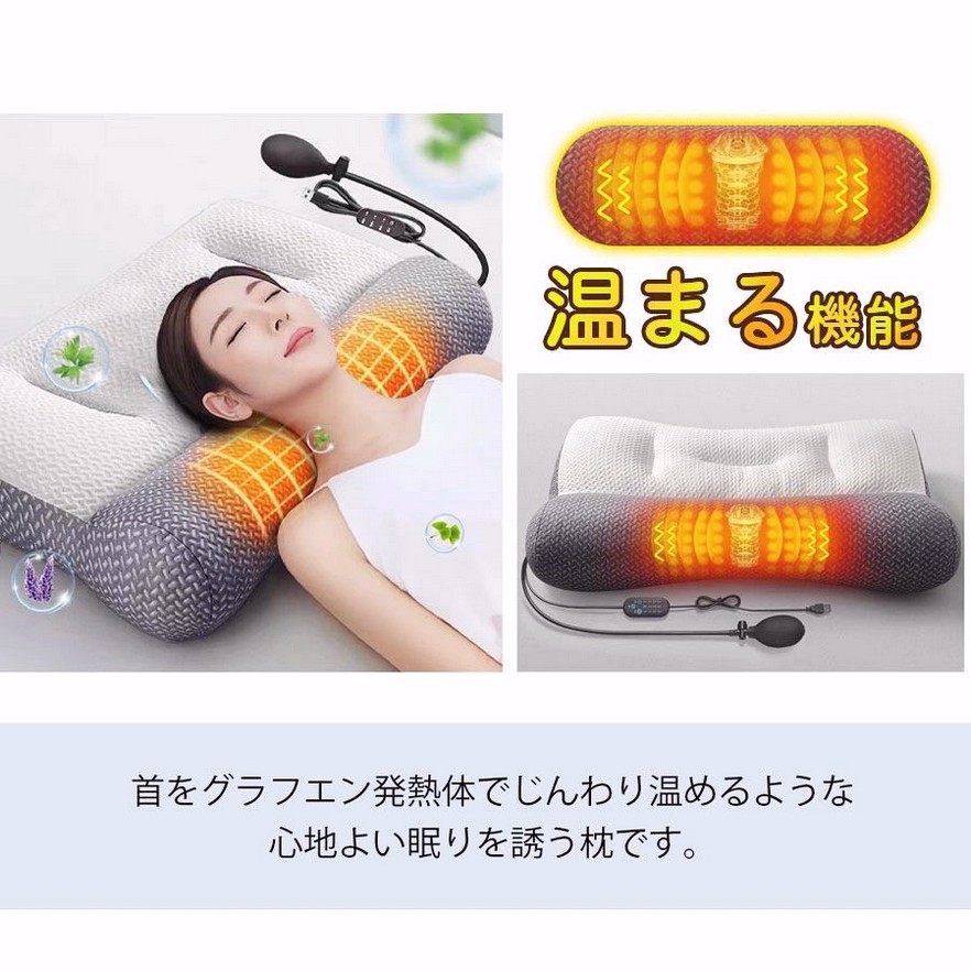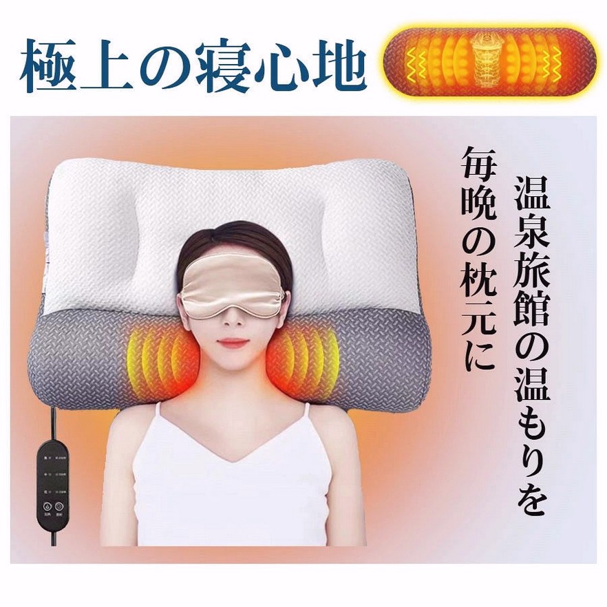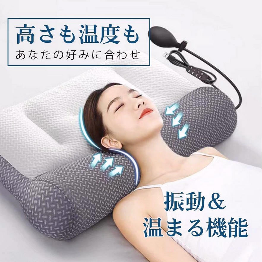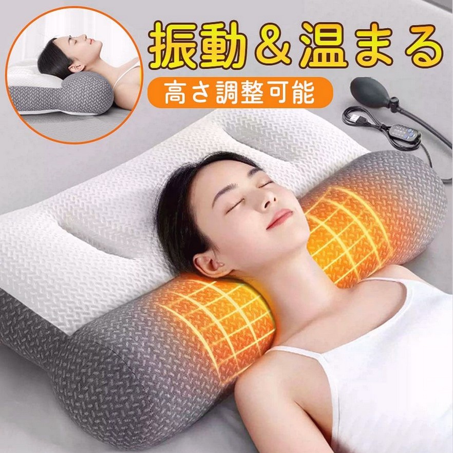 枕 電動マッサージ枕 加熱 高さ調整 インテリア 寝具 収納 人気