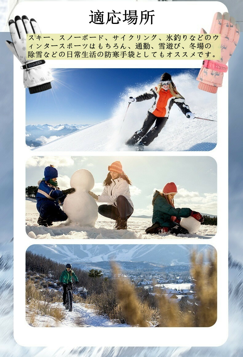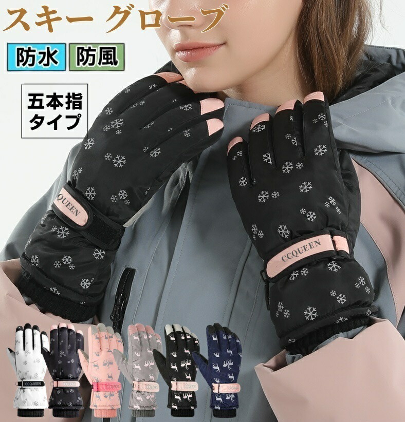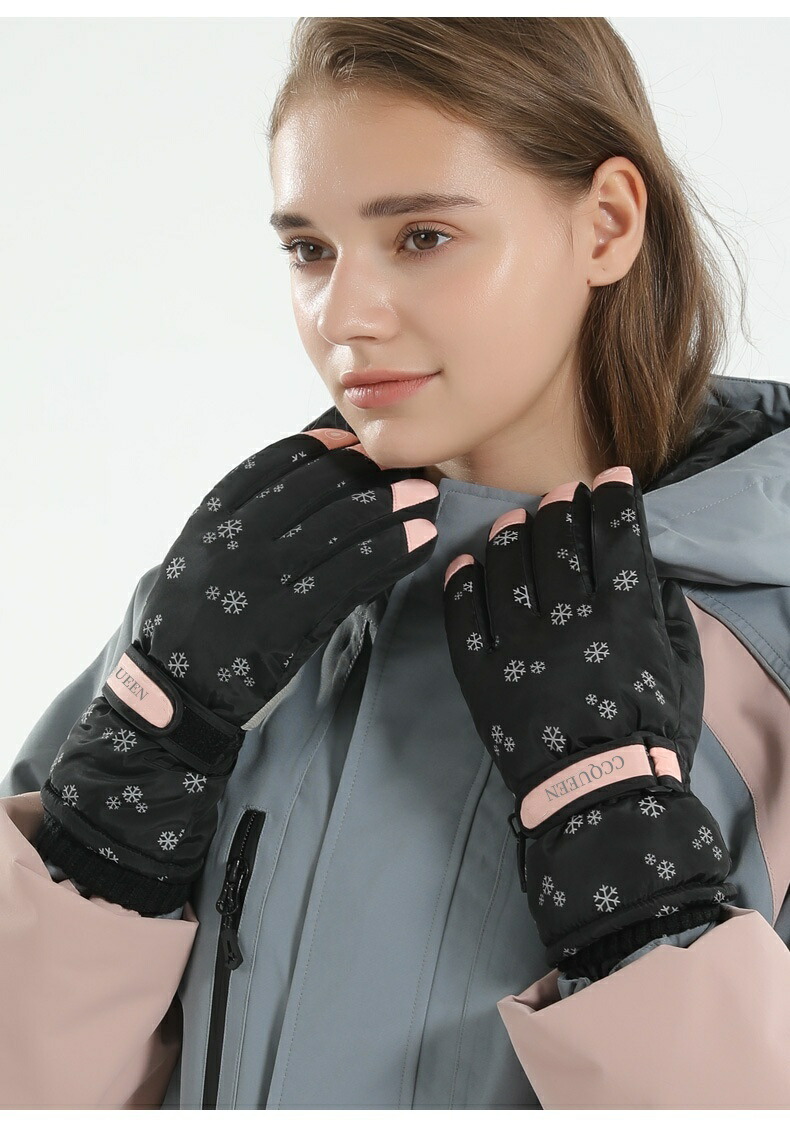 スキーグローブ レディース スノーボー ウインタースポーツ スキー スノーボード用アクセサリー グローブ 特集 ブラック雪花 ホワイト雪花 ピンク ネイビー グレー ブラック