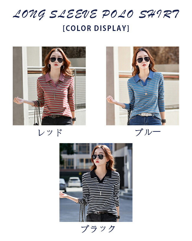 長袖ポロシャツ レディース 長袖 Tシ トップス ポロシャツ 特集 レッド ブルー ブラック S M L XL XXL 3XL
