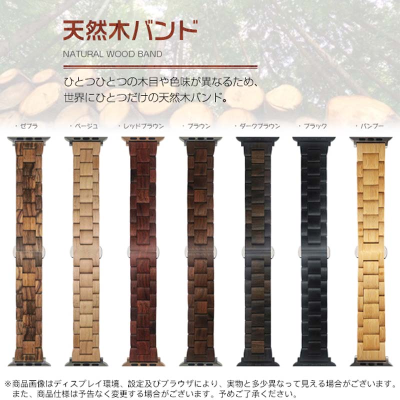Apple Watch 11 天然木 腕時計 続々入荷中 ゼブラ ベージュ レッドブラウン ブラウン ダークブラウン ブラック バンブー 38/40/41/42(Series10/11)兼用 42(Series 3/2/1)/44/45/46/49兼用