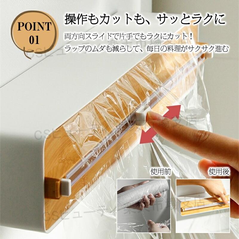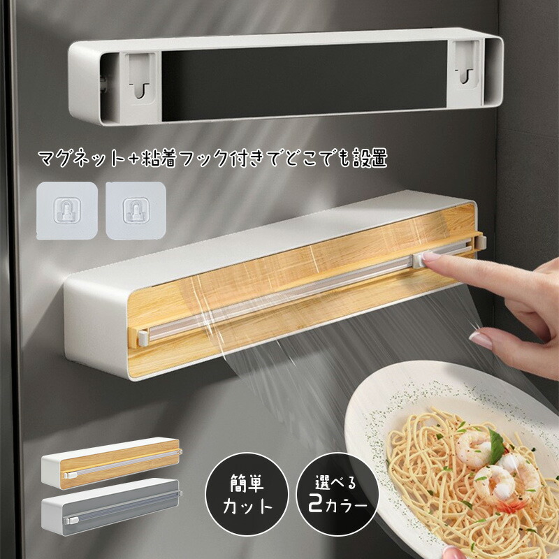 ラップケース ラップカッター ラップホ キッチン整理用品 冷蔵庫マグネット 続々入荷中 グレー 木目調