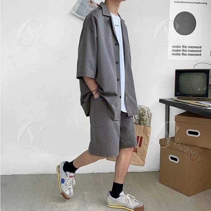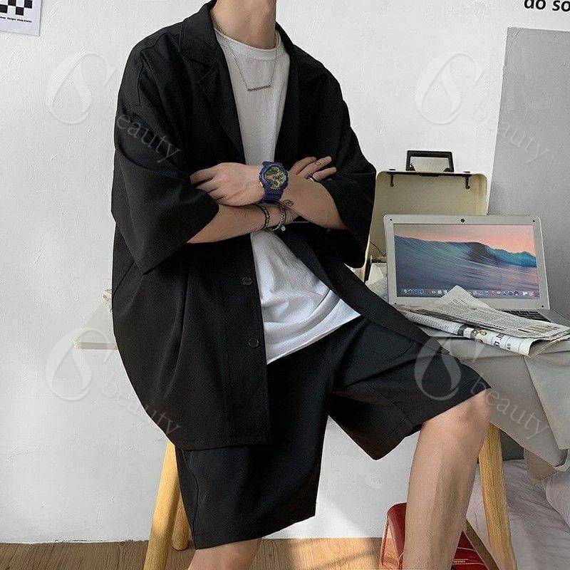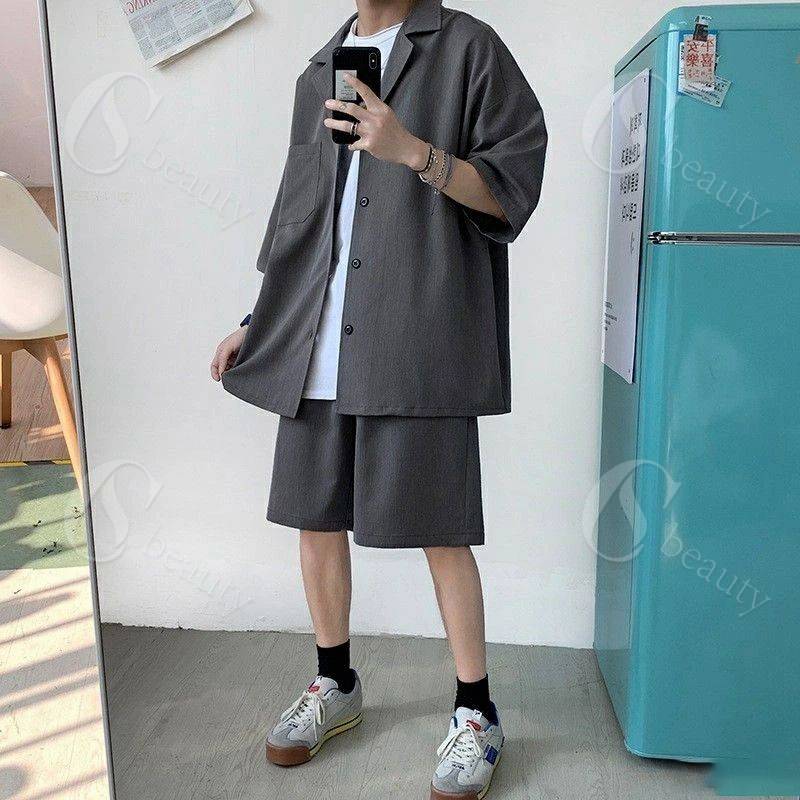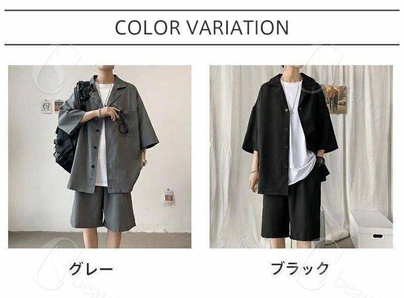 セットアップ メンズ 夏 半袖 上下セ トップス シャツ ブラウス 新登場! ブラック グレー M L XL 2XL 3XL