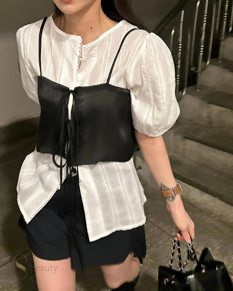 シアースリーブ ドッキングシャツ ボウタイシャツブラウス