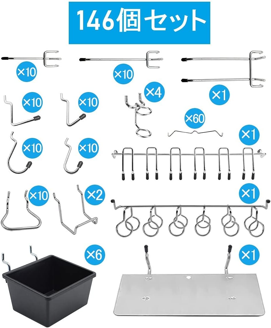 有孔ボード フック 146個 25mm シルバー ブラック