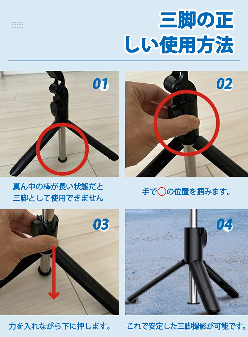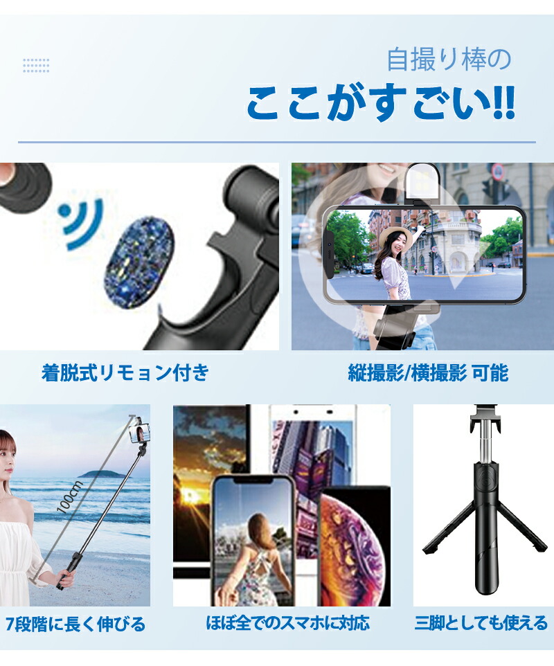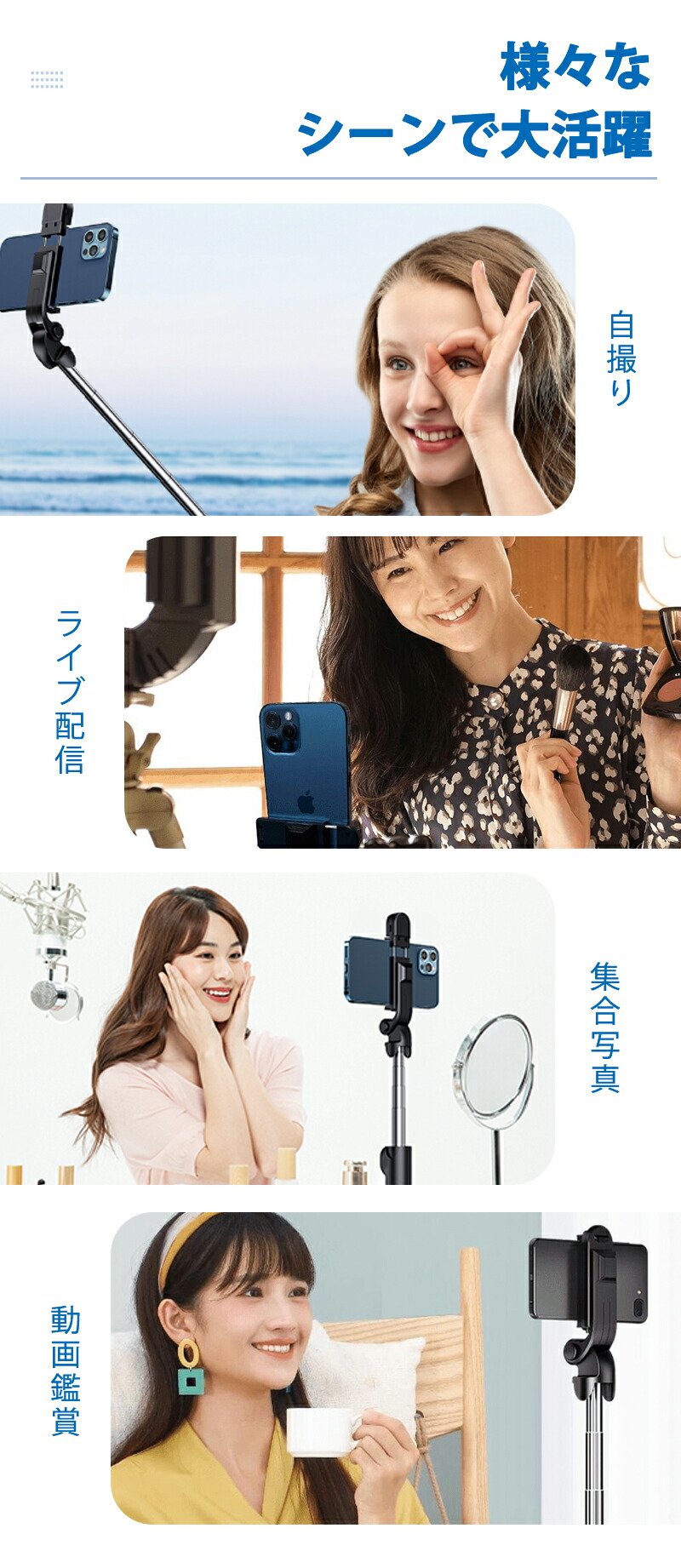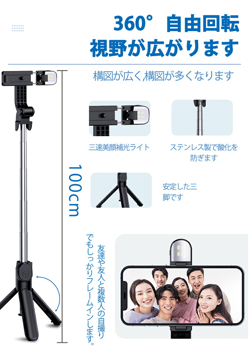 自撮り棒 ワイヤレスリモコン付き 三脚 スマートフォン タブレット 早い者勝ち ブラック ホワイト ライト付属 ライト不付属