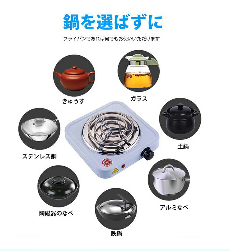 電気コンロ 卓上 1000W コンパク ホワイト ブラック