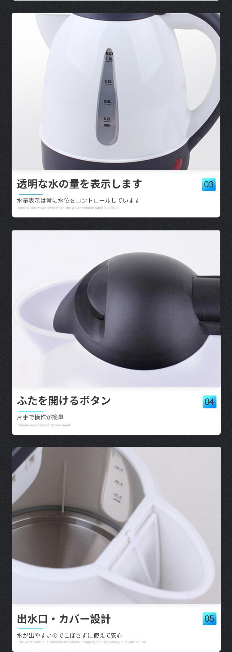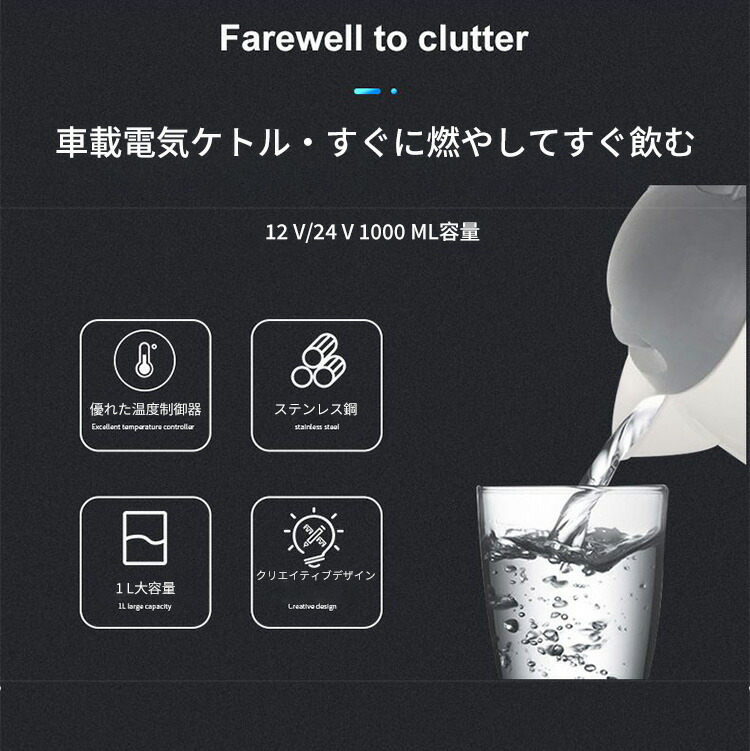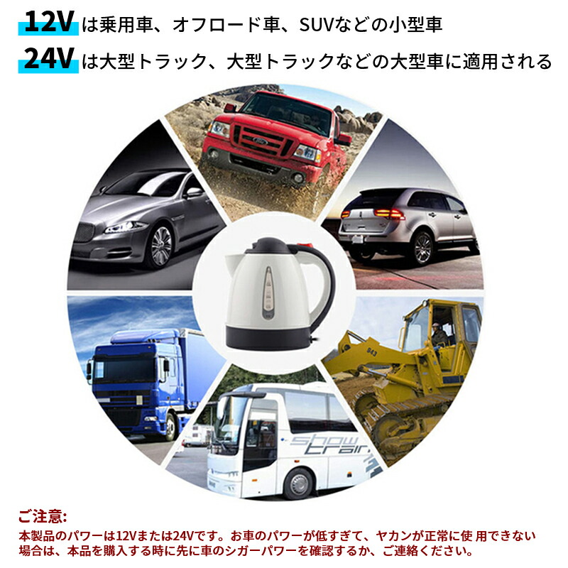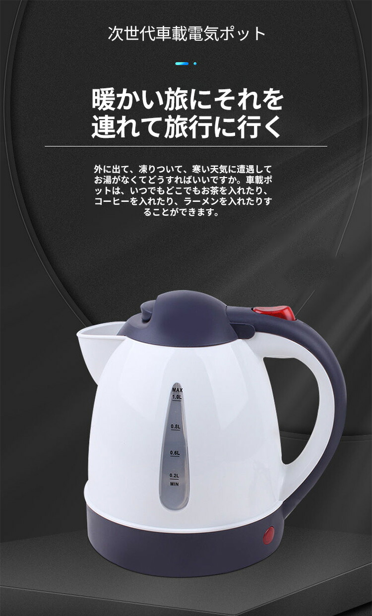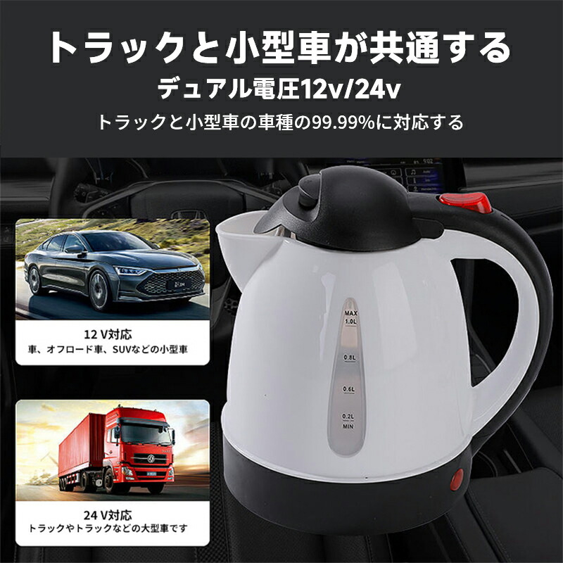 カーケトル 電気ポット 1000ml ブラック ホワイト 12V 24V