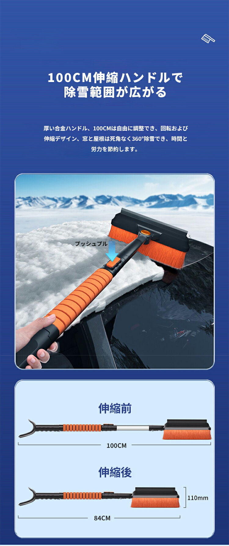 伸縮式 70-125cm 多機能 スノ