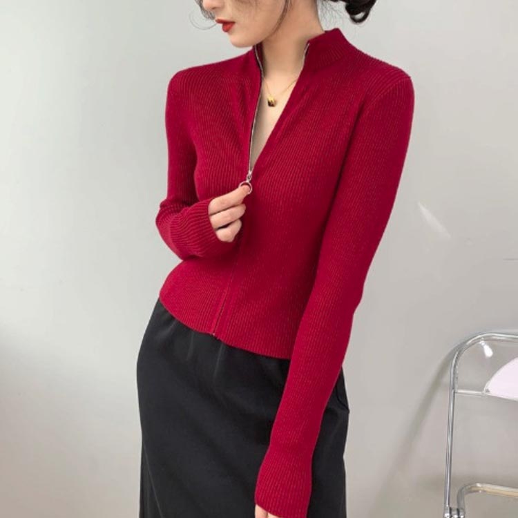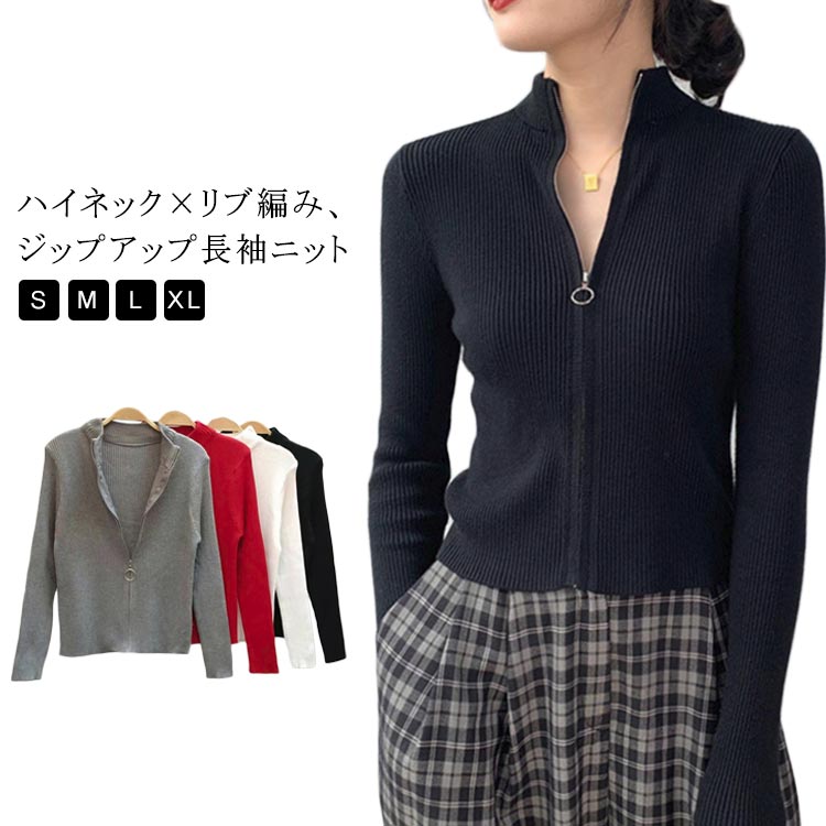ショートニット シンプル ジップアップ レディースファッション 続々登場 ブラック ホワイト グレー レッド S(35-42.5KG) M(42.5-50KG) L(50-55KG) XL(55-62.5KG)