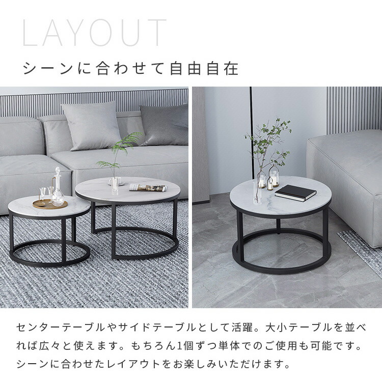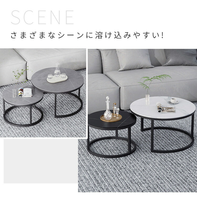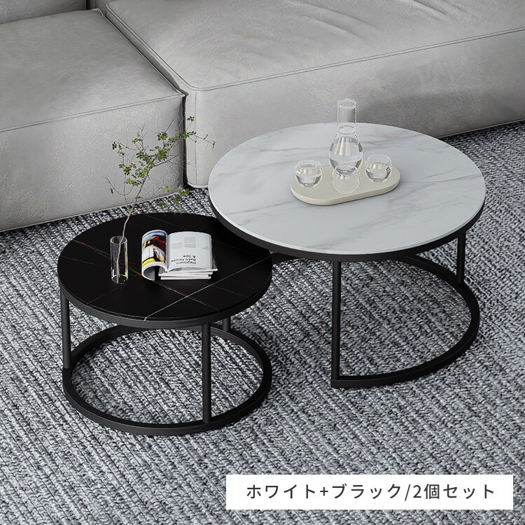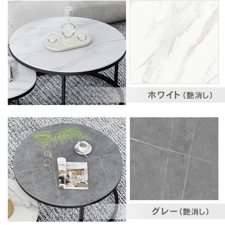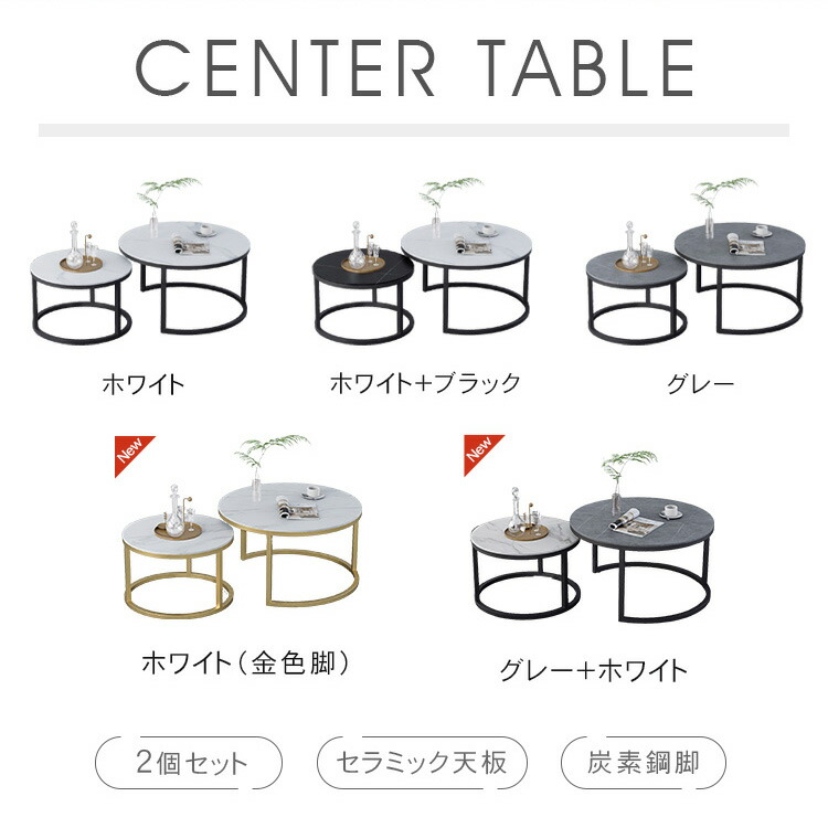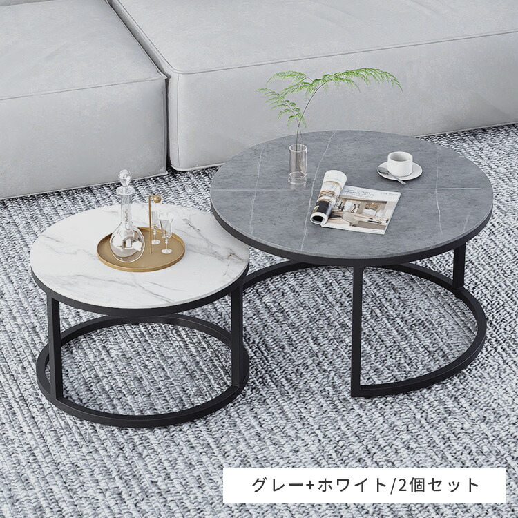 ネストテーブル 2個セット センターテ グレー ホワイト ホワイト+ブラック ホワイト+グレー ホワイト(金脚)