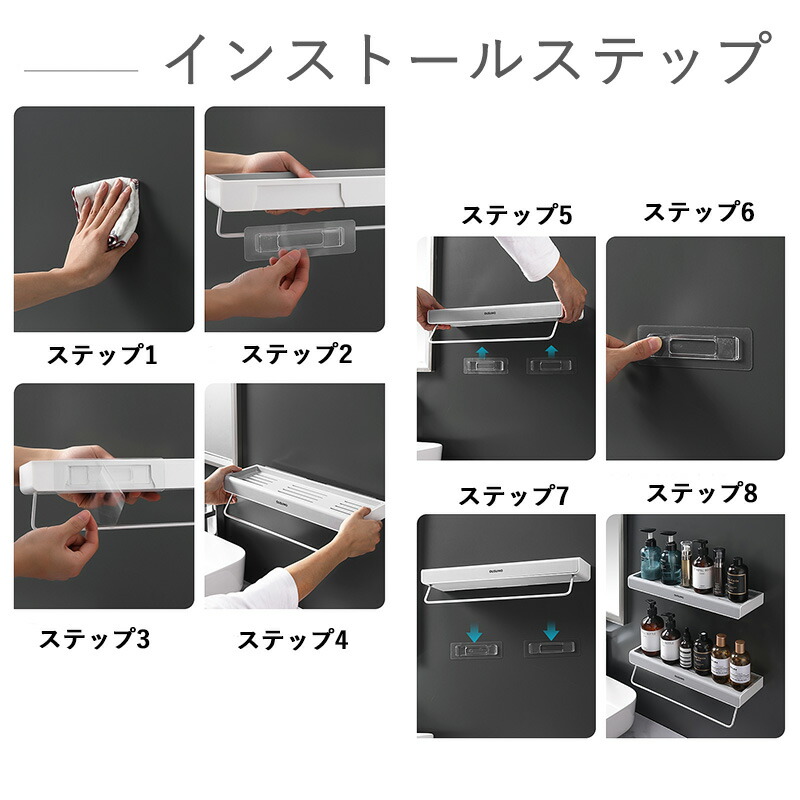 タオルラック 収納ラック 多収納 粘着 日用品雑貨 文房具 手芸 続々入荷中 ブラック グレー