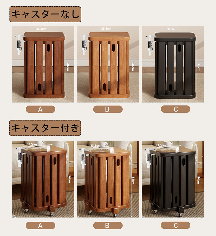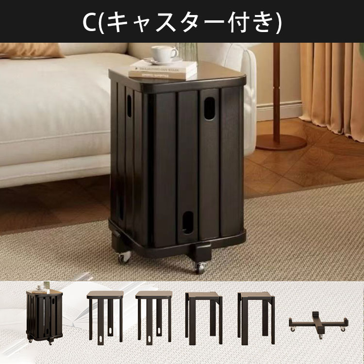 天然木 スツール サイドテーブル キャ A(キャスターなし) B(キャスターなし) C(キャスターなし) A(キャスター付き) B(キャスター付き) C(キャスター付き)