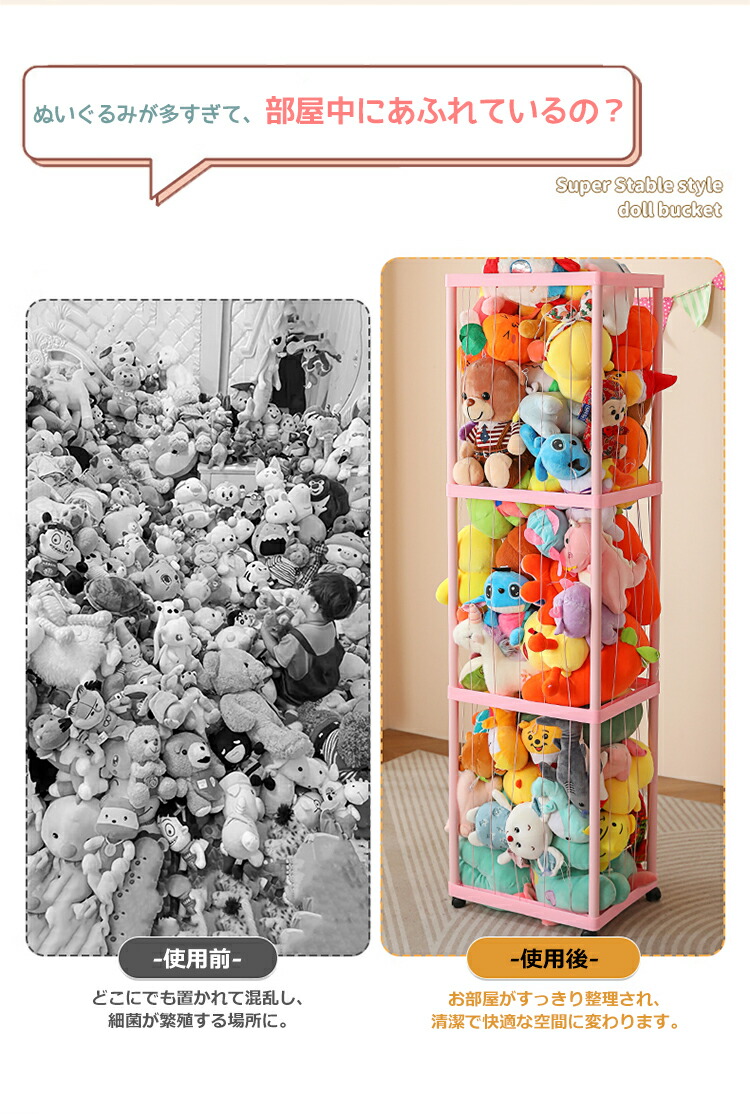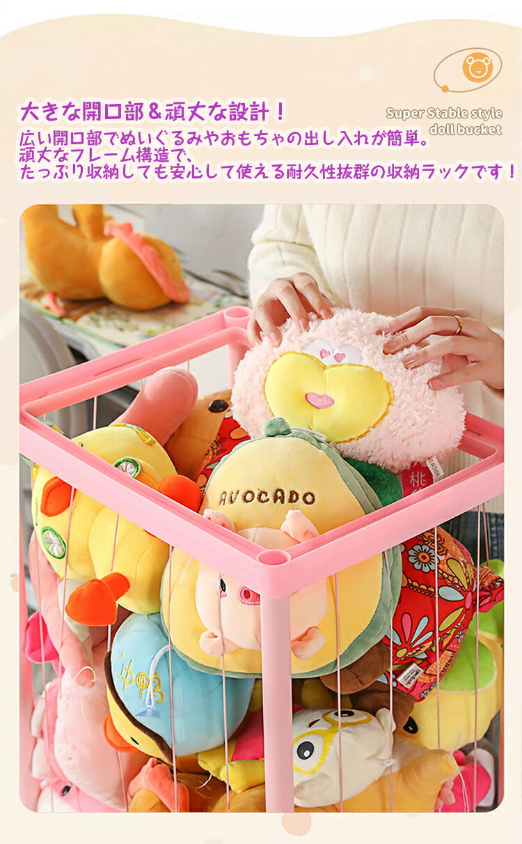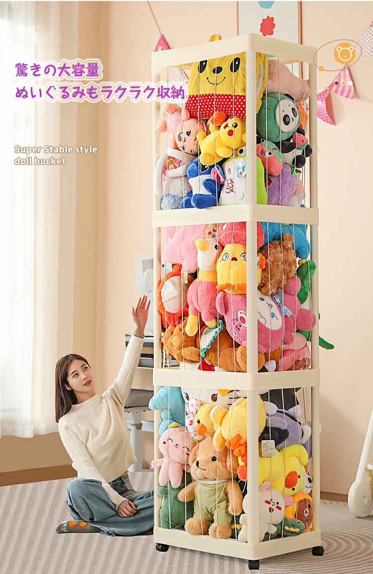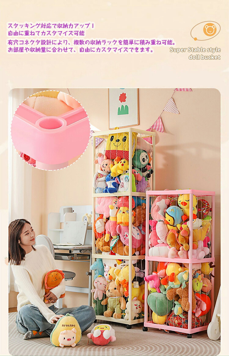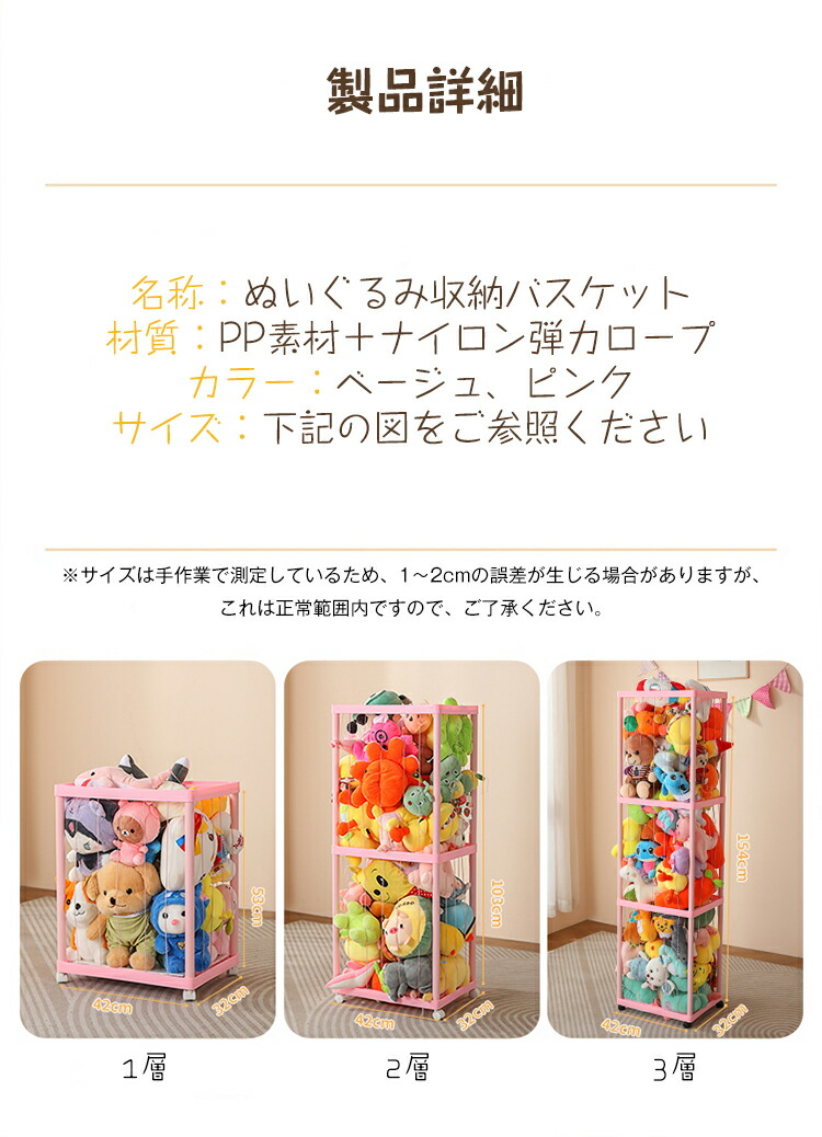 ぬいぐるみ 収納 ラック 大容量 収納 ベージュ ピンク 1層 2層 3層