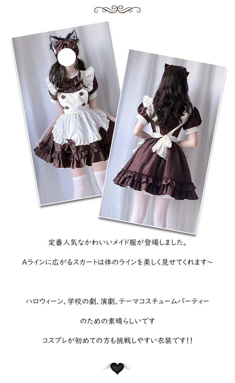 ハロウイン、学校の劇、演劇、テーマコスチュームパーティーのための素晴らしいメイド服です!コスプレが初めての方も挑戦しやすい衣装です。普段のおでかけのおしゃれにはもちろん、原宿系夢かわいい系ガーリー、森ガール、姫系等ファッションがお好きな方や、ゴスロリロリータ系コスプレコスチューム衣装のドレス、ライブイベントでの双子コーデ等にもご利用いただけます。