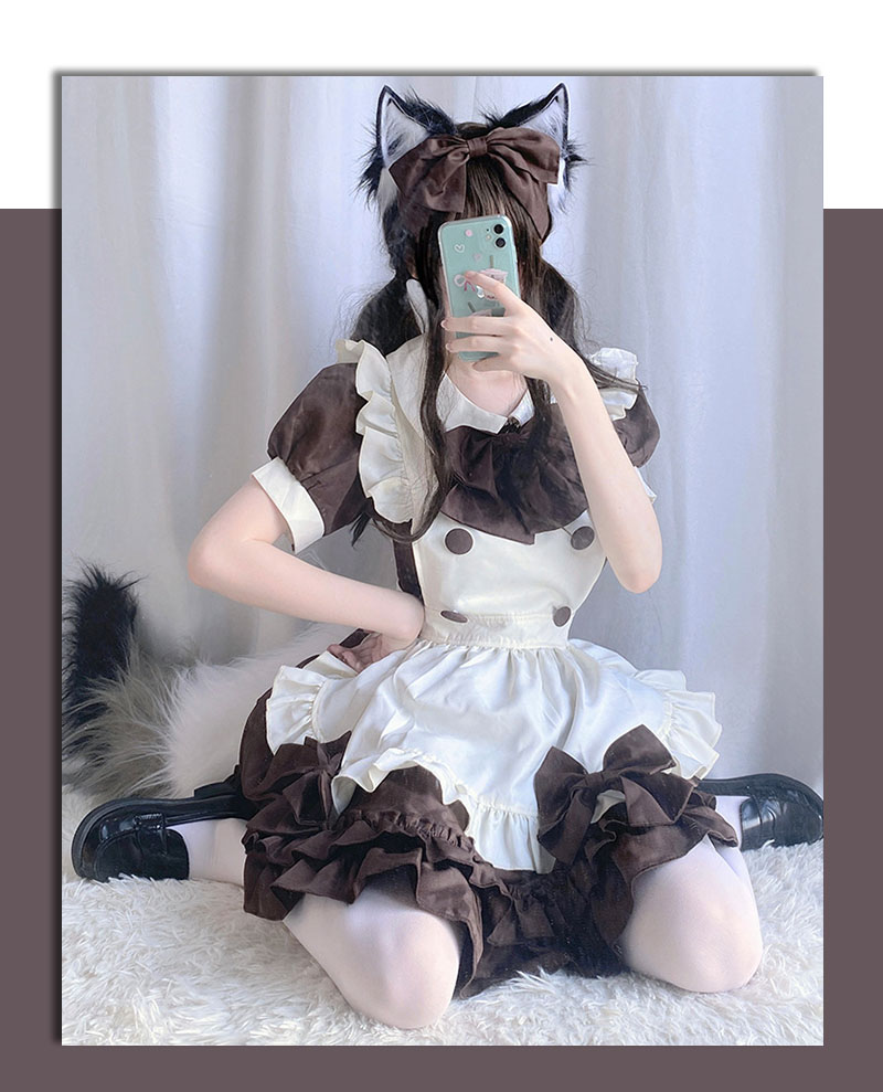 セット内容:リボンカチューシャ、ワンピース、エプロン、リボン*3