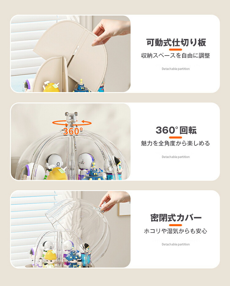 密閉式カバー設計で、大切なフィギュアをホコリや湿気から保護。長期保存でも美しさをキープします。