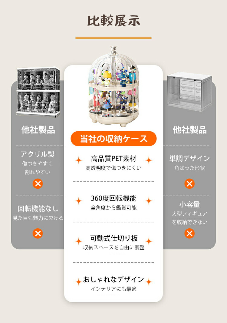 フィギュア収納ケース 360°観賞 回転 透明 卓上 ケース ボックス 収納ケース 展示ケース フィギュアケース 陳列ケース 人形ケース 収納 回転式 収納ボックス おもちゃ 飾る 大容量 ぬいぐるみ